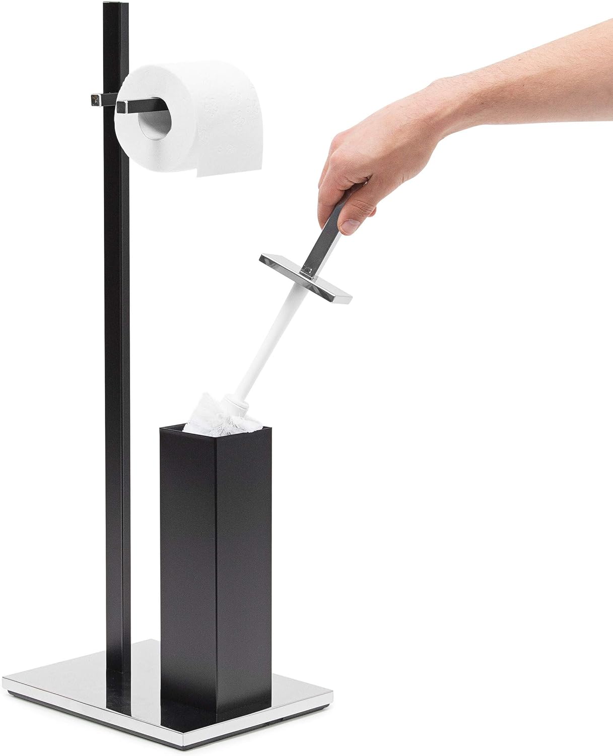 - Schicker Stand Toilettenpapierhalter im modernen Materialmix aus verchromtem sowie schwarzem, matten Stahl - Ein eleganter und stilvoller Blickfang für Ihr Badezimmer