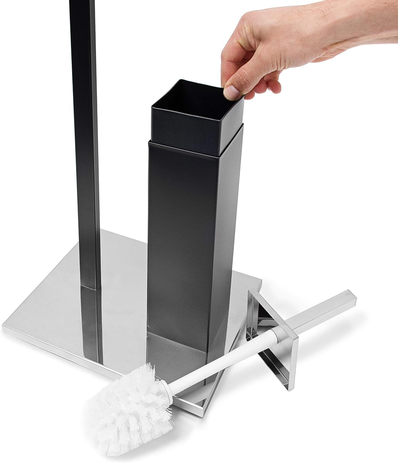 - Bürstenhalter und Toilettenpapierhalter in einem - Origineller Hingucker durch schnörkellose Form - Zum Reinigen kann der Kunststoffbehälter der Klobürste einfach entnommen werden