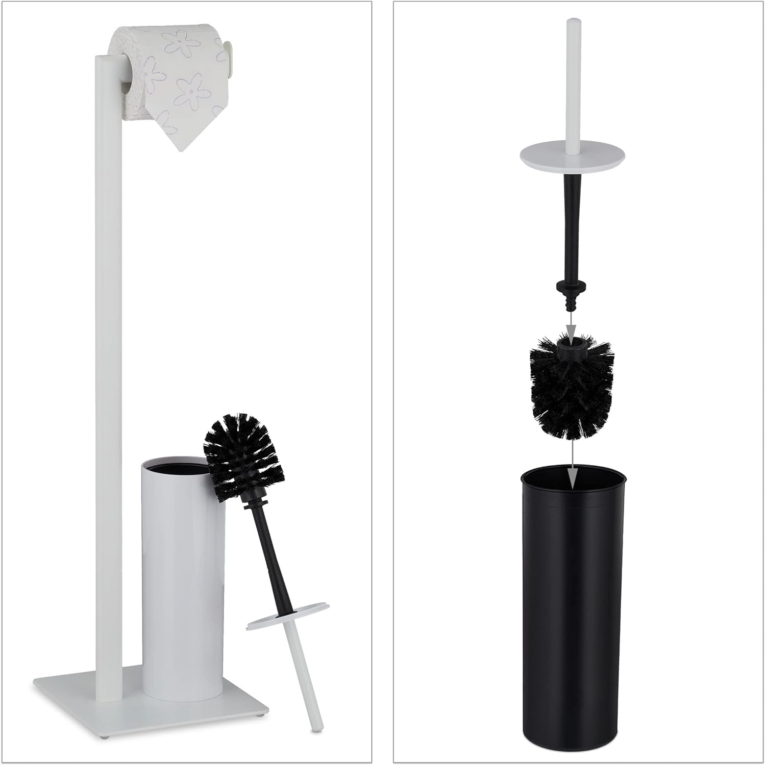 Relaxdays WC Garnitur, stehender Toilettenpapierhalter, Toilettenbürste mit Bürstenhalter, Stahl, HB