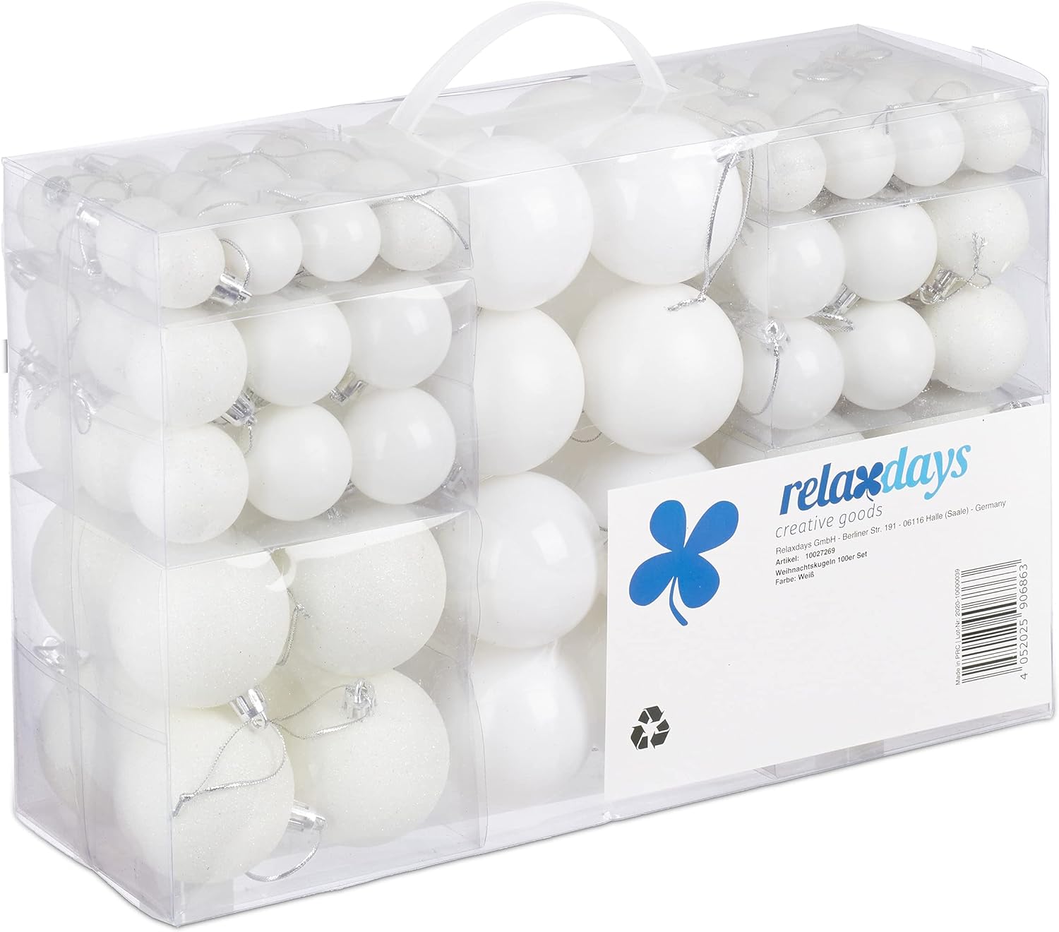 • XXL Set: Weisse Weihnachtskugeln zum individuellen Dekorieren des Christbaums im grossen 100er Set