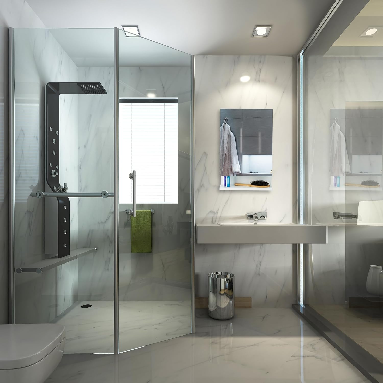• Strom: Nutzen Sie die Steckdose im Hängeschrank - Für elektrische Zahnbürste, Rasierapparat uvm.