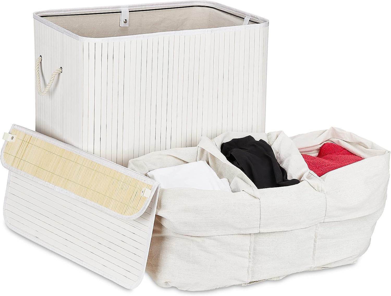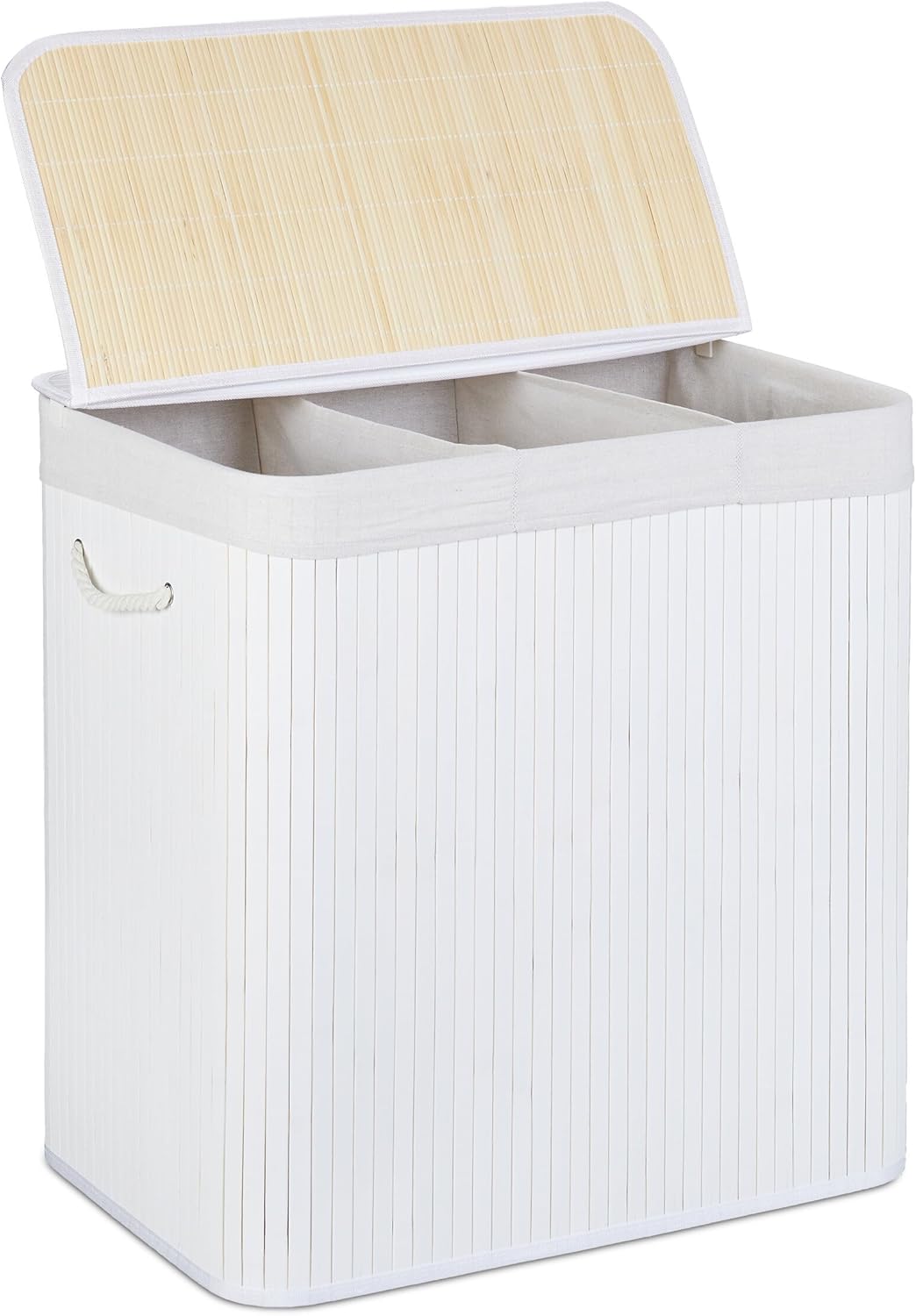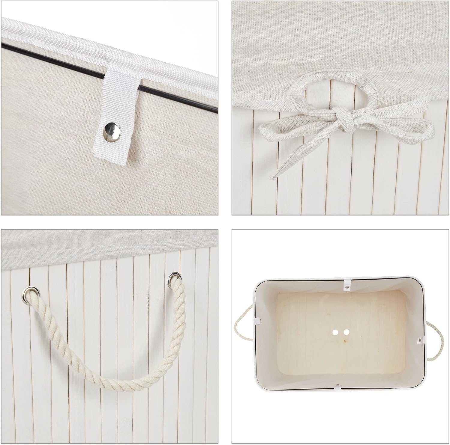 - Fächer: Weisser Wäschesammler aus Bambus mit 3 Fächern für helle, dunkle und bunte Schmutzwäsche