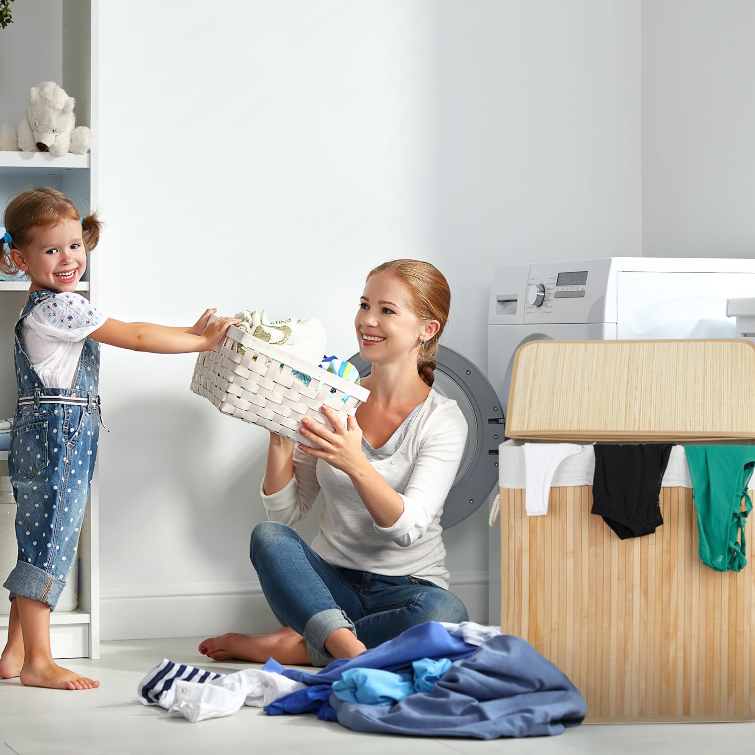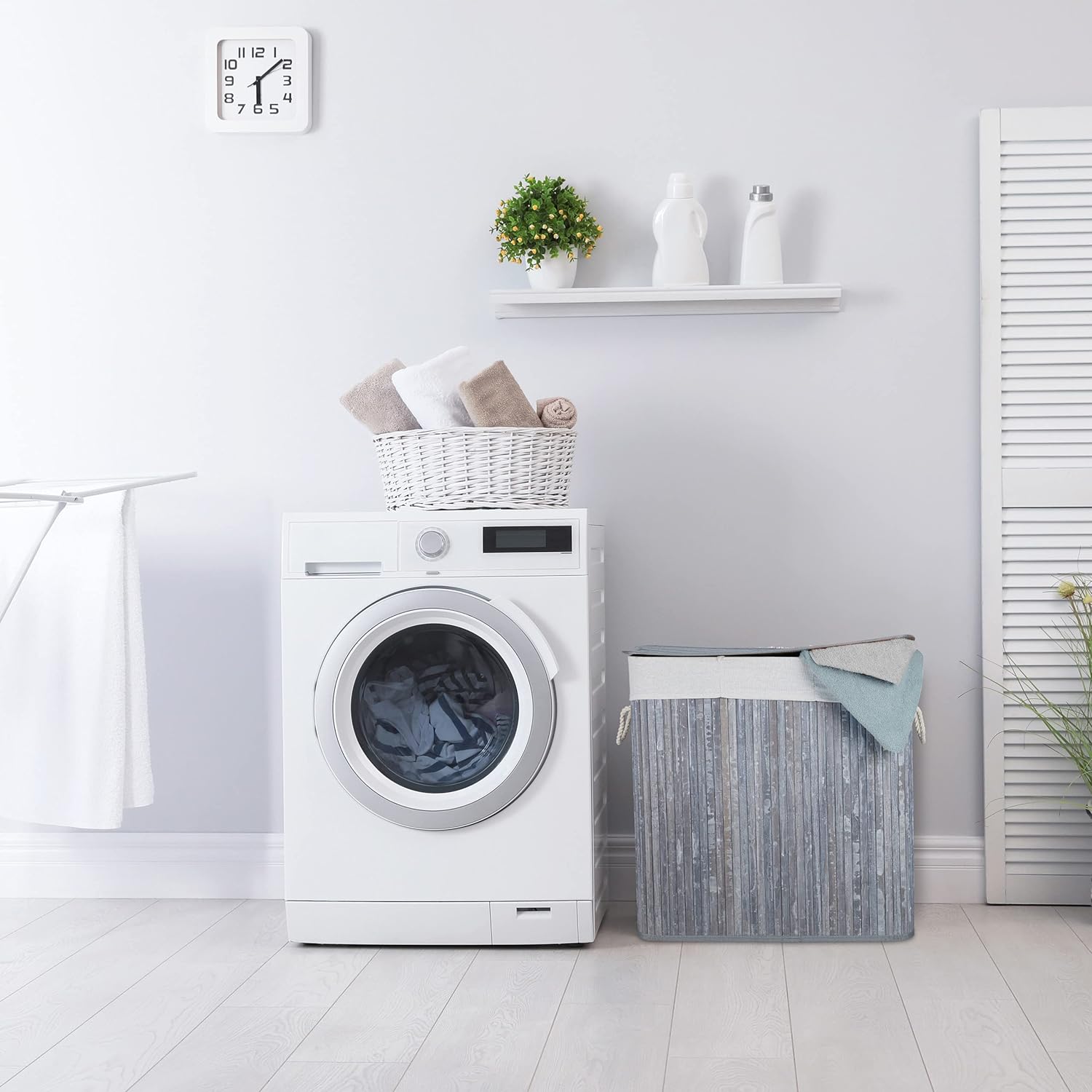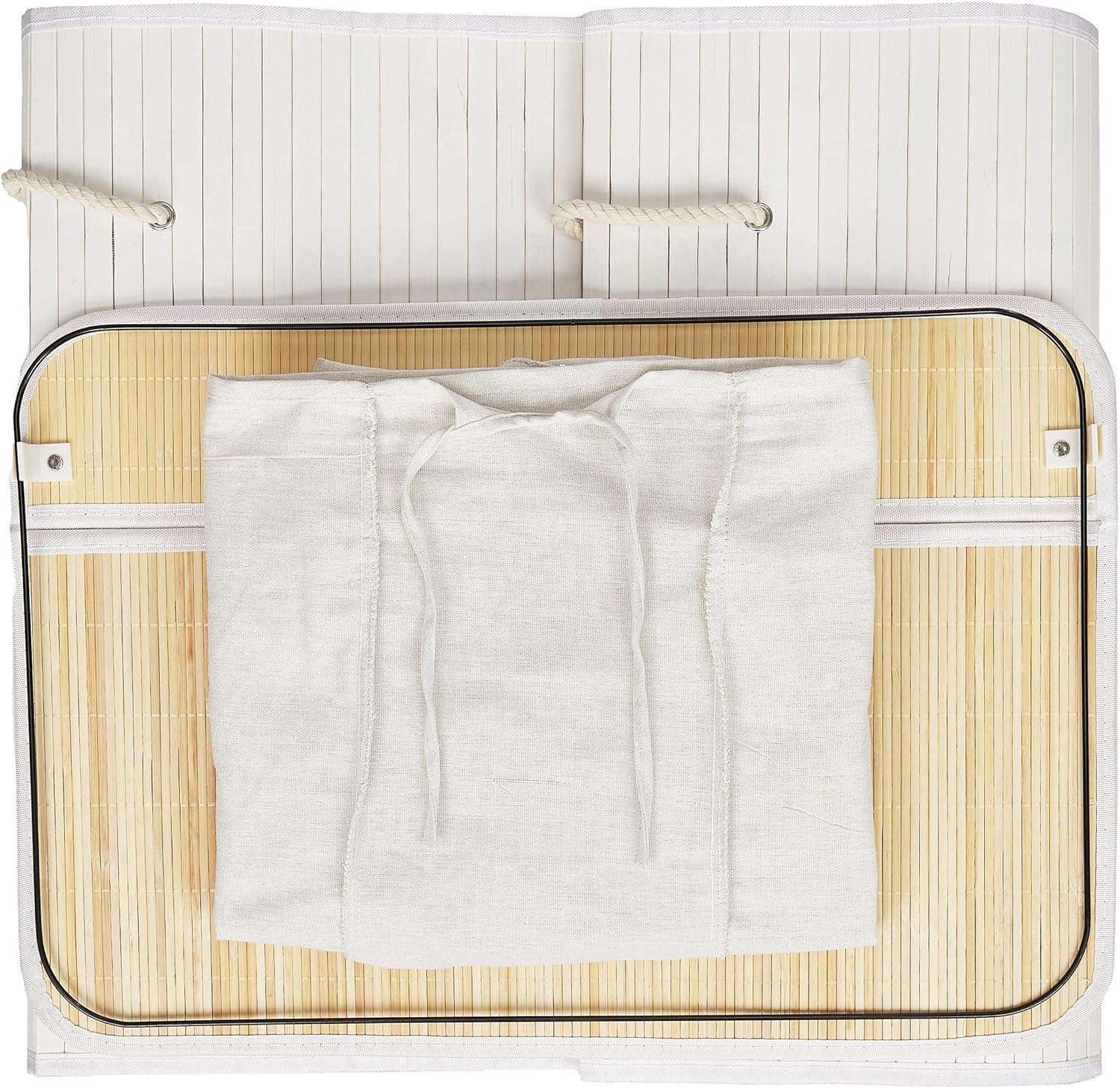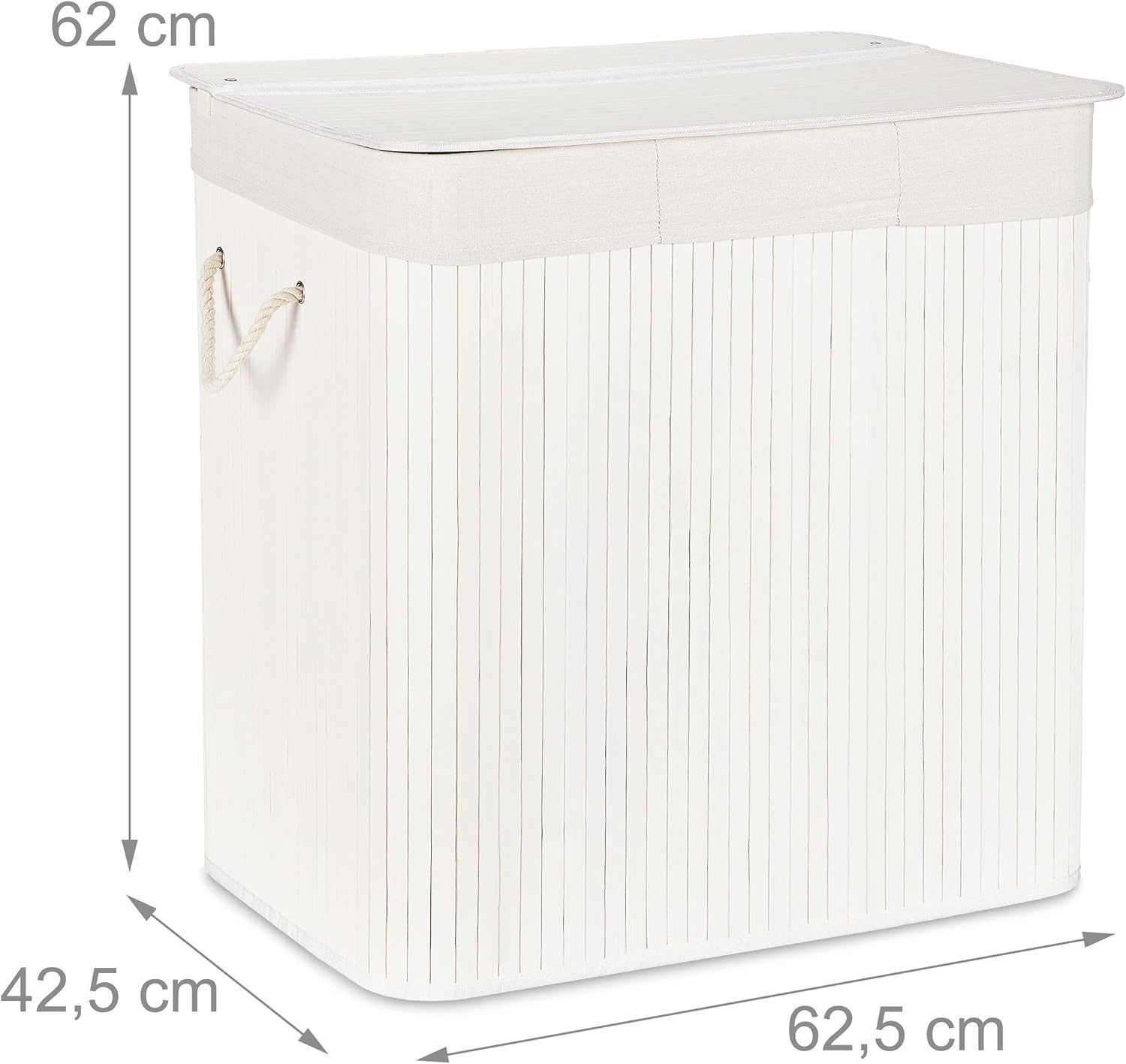 - Fächer: Weisser Wäschesammler aus Bambus mit 3 Fächern für helle, dunkle und bunte Schmutzwäsche