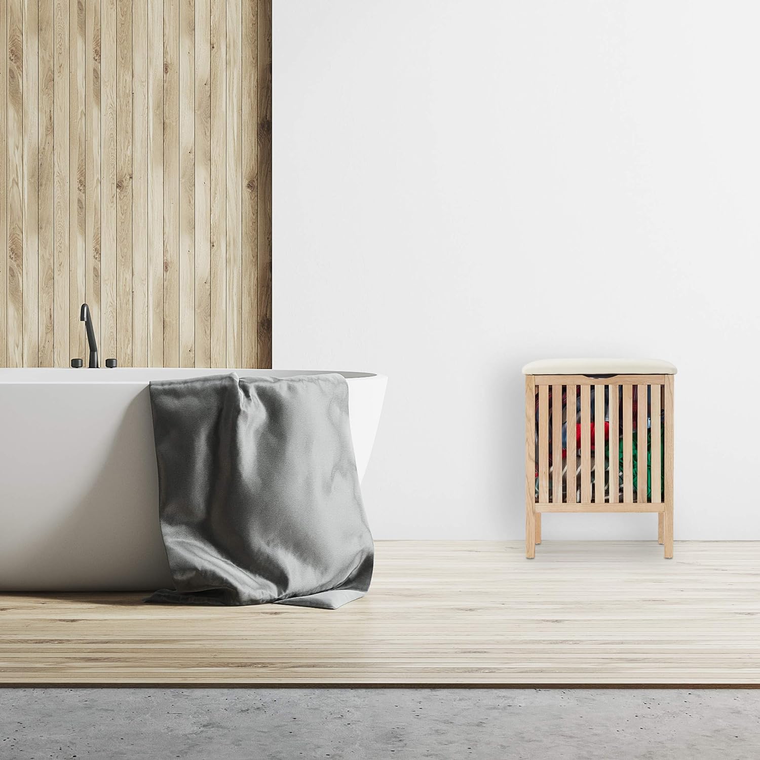 - Zum Sitzen: Schicker Holzwäschekorb mit bequemem Polster als Sitzgelegenheit im Bad oder Schlafzimmer