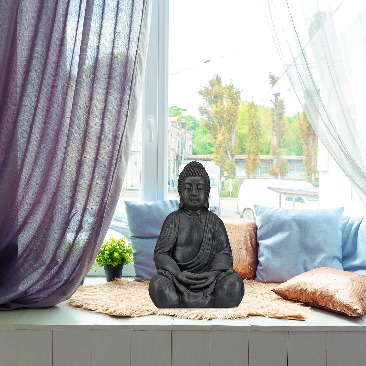 • Skulptur: Sitzende Buddha Figur mit ca. 50 cm Höhe aus Polyresin - Feng Shui Deko in Dunkelgrau