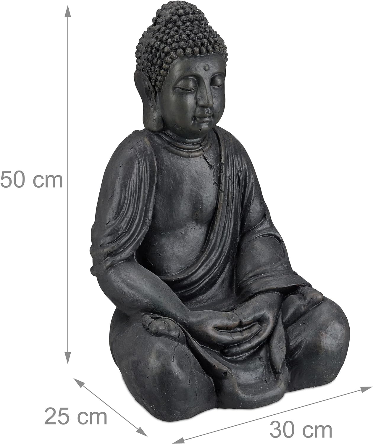 Relaxdays XL Buddha Figur sitzend, 50 cm hoch, Feng Shui, Outdoor, Garten Dekofigur, grosse Zen Budd