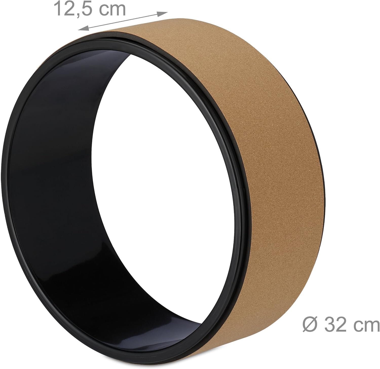 Relaxdays Yogarad, Ø 32 cm, Kunststoff, Kork, rutschfest, für Rückenübungen, Dehnbarkeit, Yogazubehö