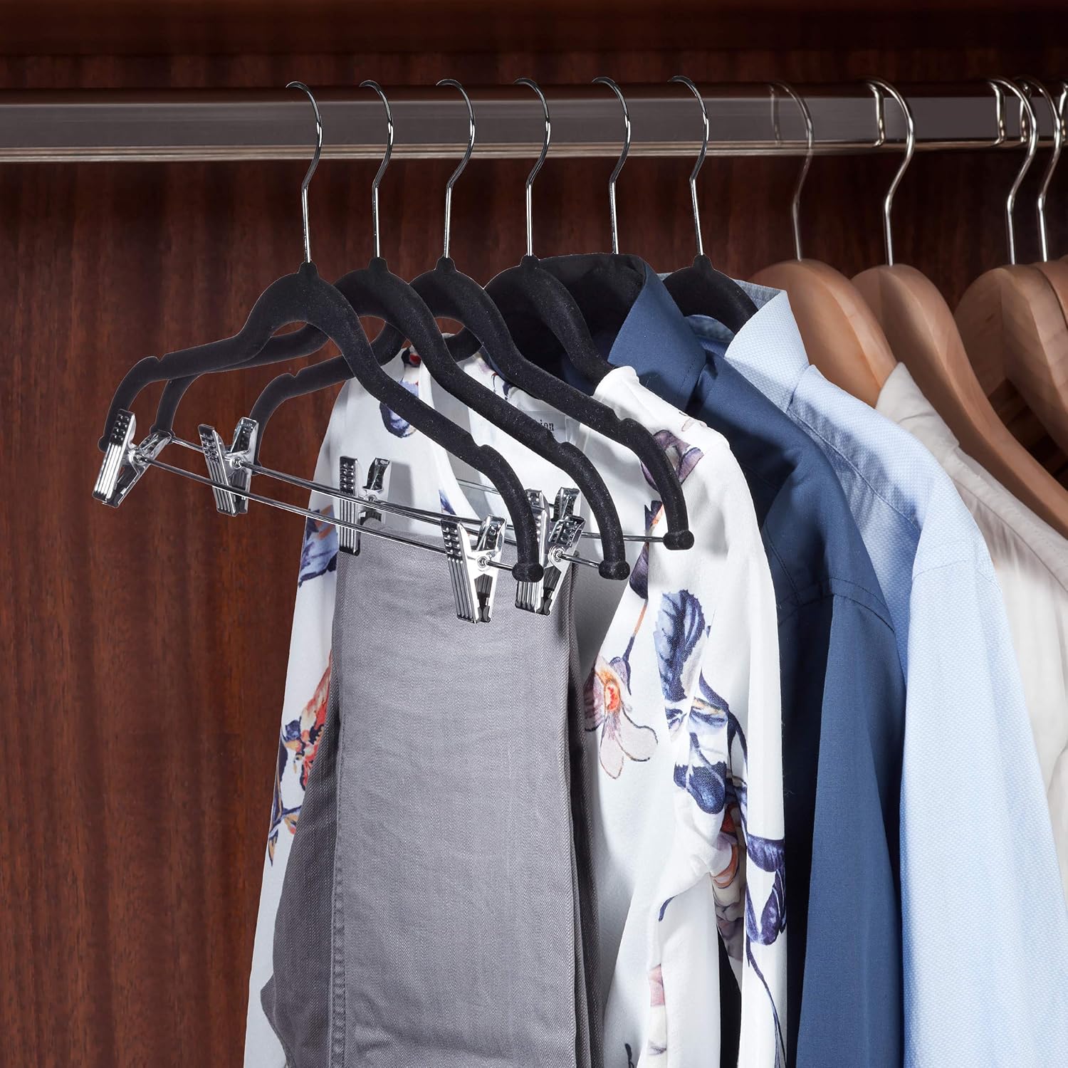 • Rockhalter: Die Clips der Samtbügel lassen sich verschieben und halten Röcke u. andere Kleidung fest