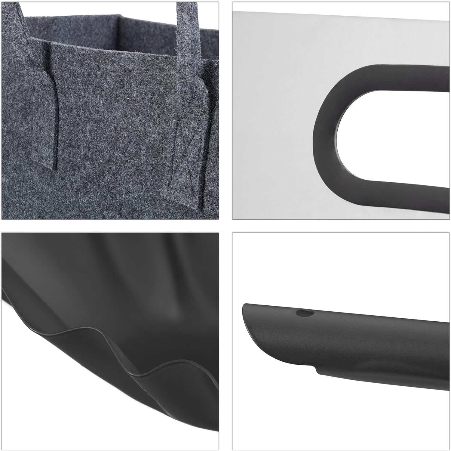 • 3 teiliges Kamin-Set: Das Set enthält eine Kaminholztasche aus Filz, einen Kaminholzkorb aus Metall und eine Kohlenschaufel