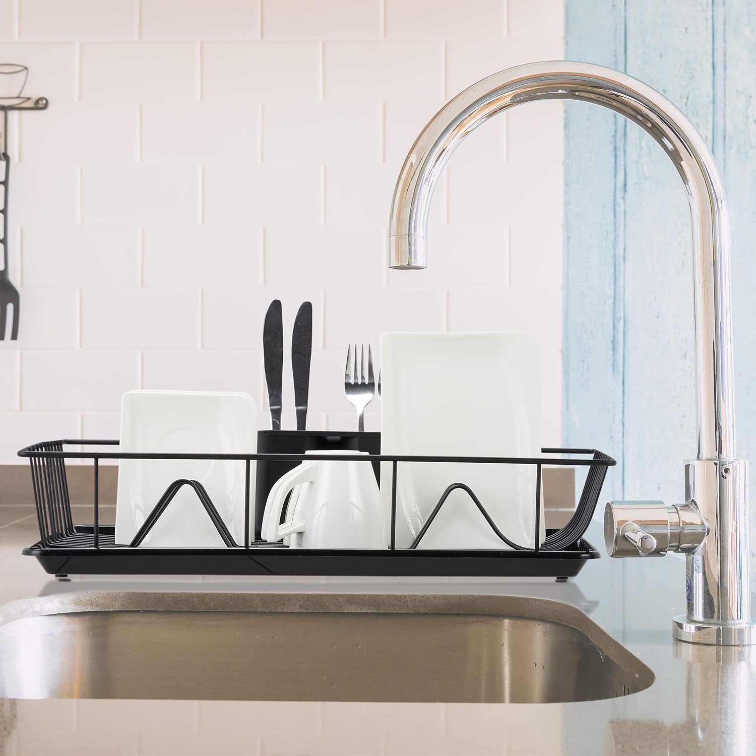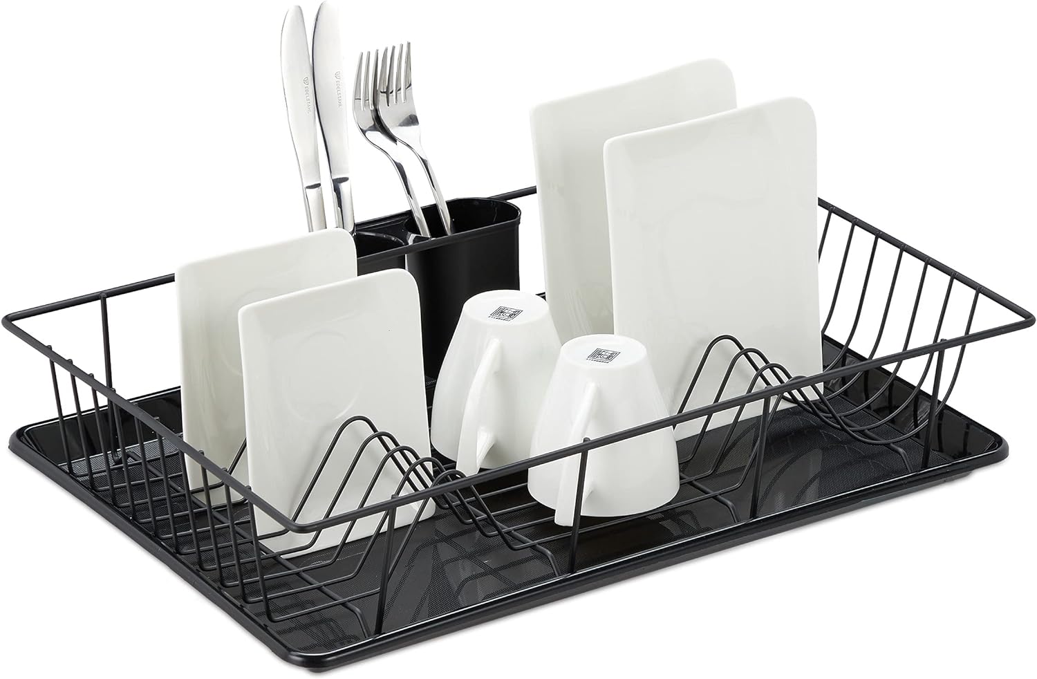 - Küchenhelfer: Lassen Sie Ihr Geschirr und Besteck bequem in dem schwarzen Abtropfständer trocknen