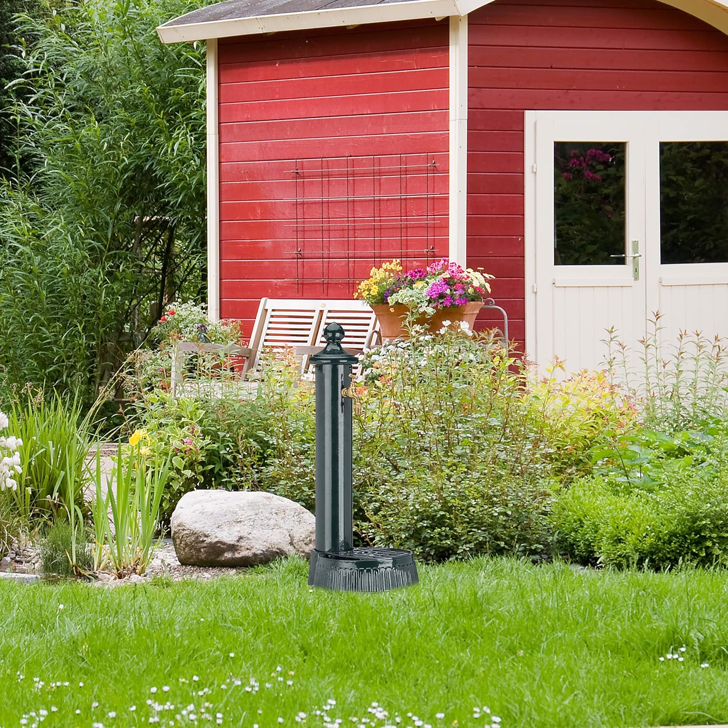 - Vielseitig: Als Waschplatz nach der Gartenarbeit, Zapfsäule für Wasser zum Giessen oder Zierbrunnen