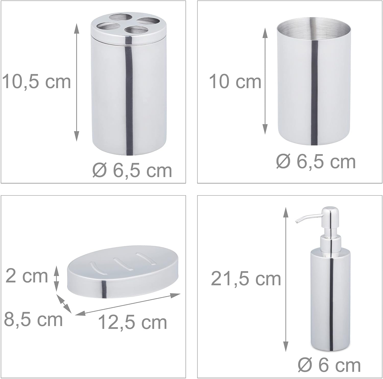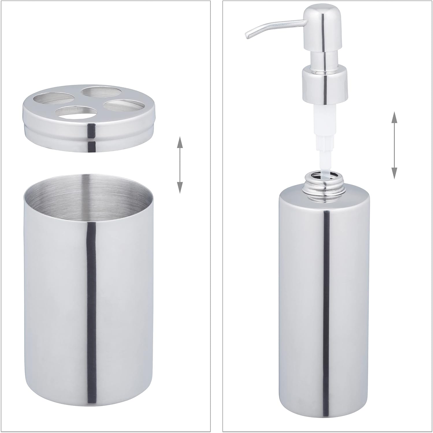 - Design: Badset aus poliertem Edelstahl - Optik in glänzendem Silber für moderne Badeinrichtungen