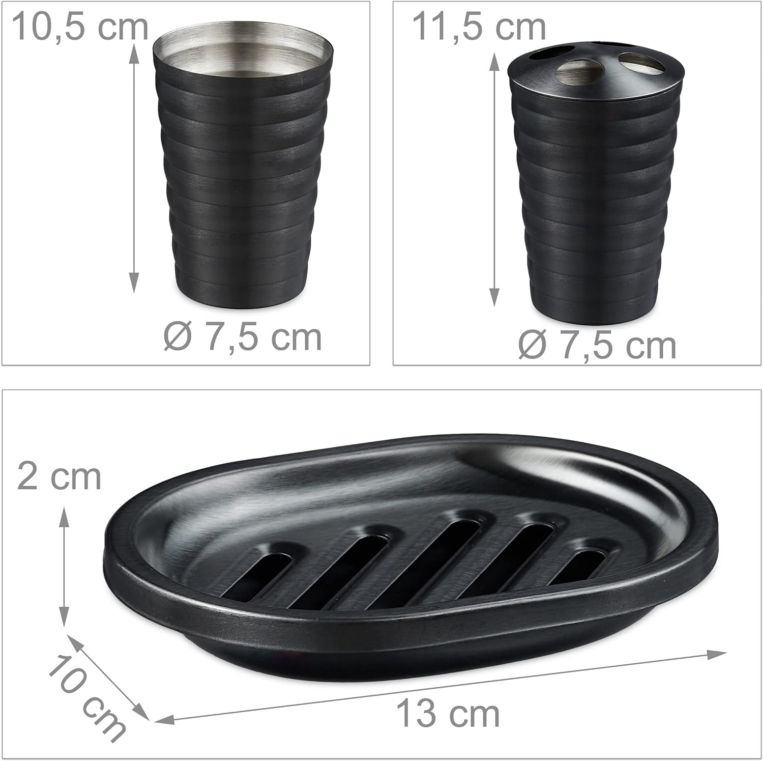- Design: Edles Badset aus gebürstetem Edelstahl in Anthrazit - Perfekt für moderne Badeinrichtungen