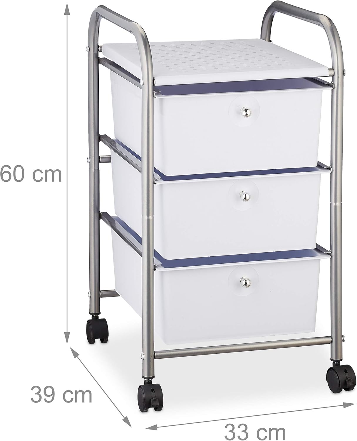 Relaxdays Badrollwagen, 3 Schubladen, Metall & Kunststoff, Rollcontainer Bad, Kosmetik, HxBxT: 60 x