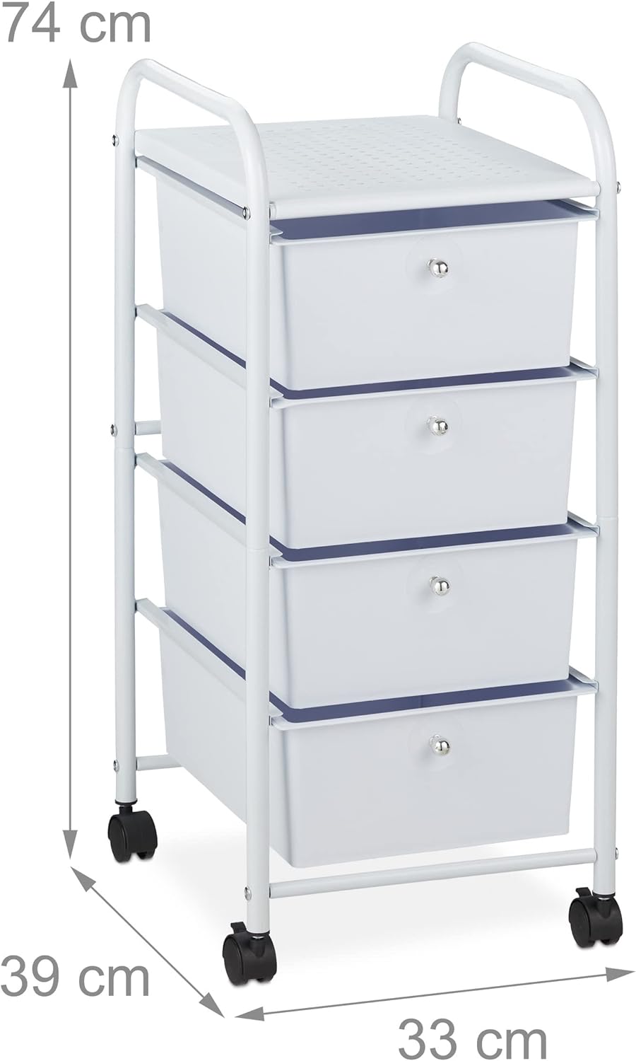 - Details: Universeller Schubladenwagen aus Kunststoff und Metall - Masse H x B x T: ca. 74 x 33 x 39 cm