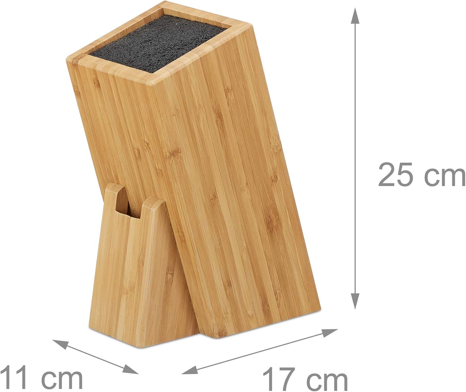 - Originell: Schräger Messerblock aus Bambus - Holzblock mit Borsteneinsatz für ca. 6 Messer - Masse H x B x T: ca. 25 x 11 x 17 cm