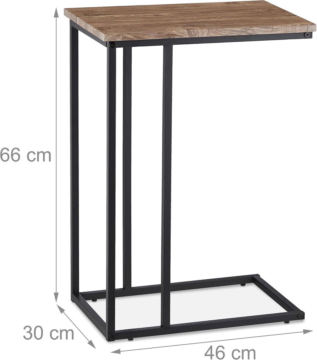 Relaxdays Beistelltisch, Industrial Design, C-form, Ablagetisch, Metall & Holzoptik, HBT: 65,5x46x30