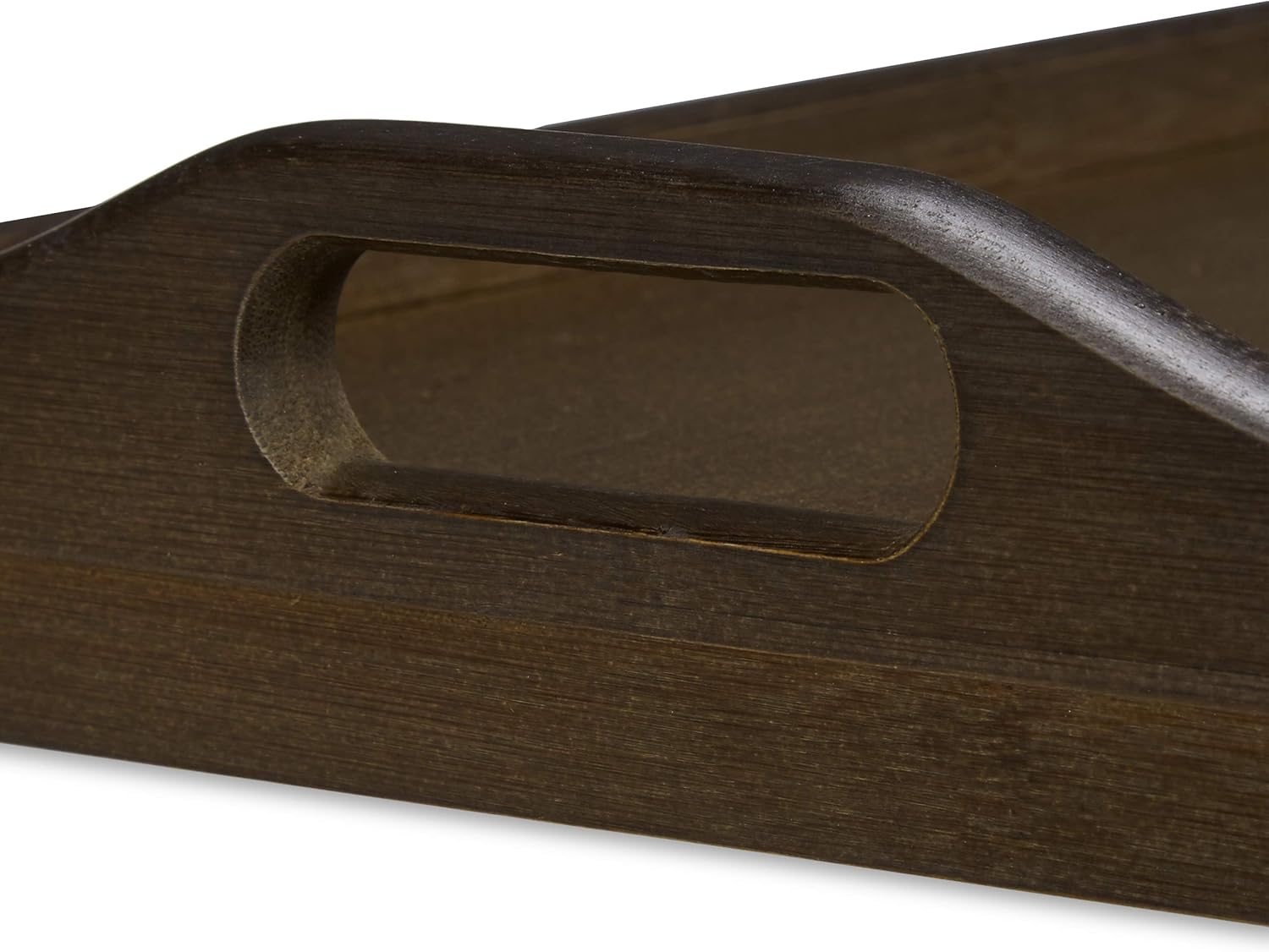- Aus Bambus: Das Tablett aus dunkelbraun lackiertem Bambus überzeugt mit einer angenehmen Optik