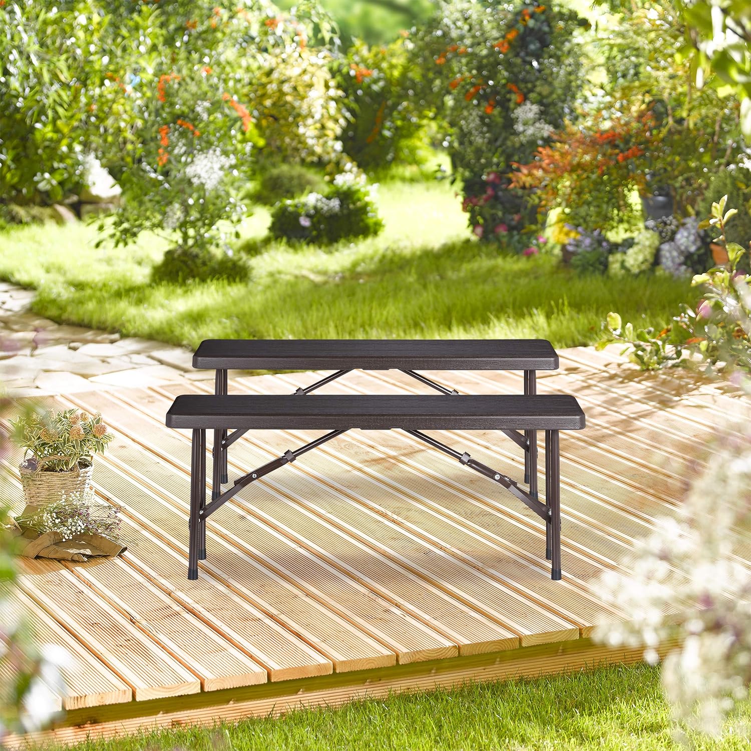Relaxdays Bierbank 2er Set, faltbar, für Terrasse & Garten, Holzoptik, Kunststoff Campingbank HBT: 4