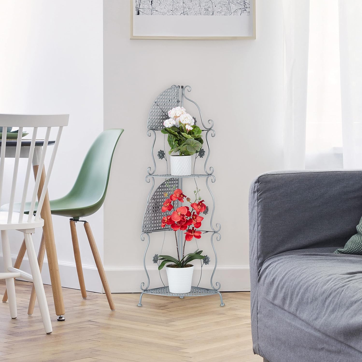 - Floral: Blumen, Pflanzen und Deko mit dem 4-stufigen Eckregal in Szene setzen - Mit Rankenverzierung