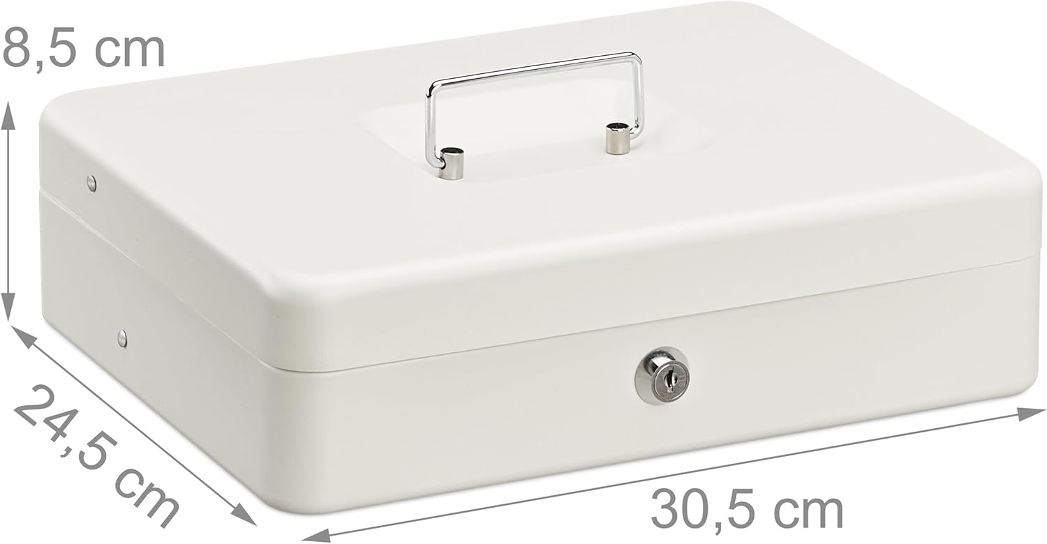 - Sicher: Abschliessbare Bargeldkasse in Weiss mit Schloss und 2 Schlüsseln - Sichere Geldaufbewahrung