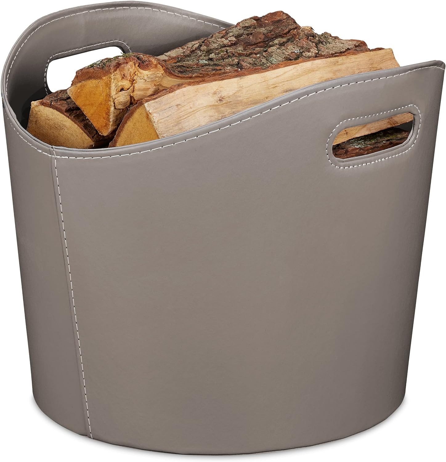 - Basics: Stabiler Kaminholzkorb im Materialmix mit Kunstlederbezug - H x D: ca. 32 x 38 cm - Ca. 23 L