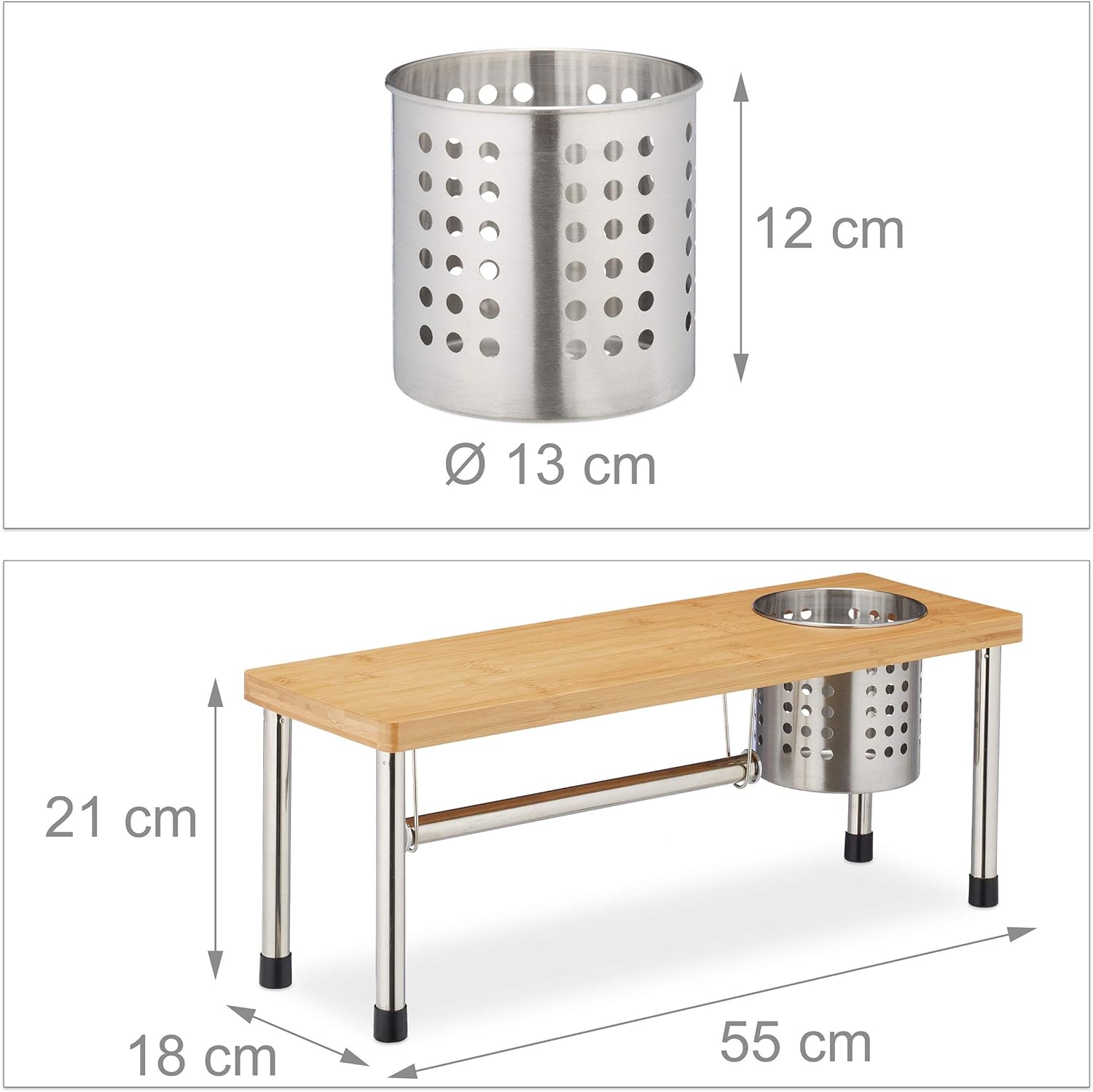 - 3in1: Tischregal aus Bambus mit Edelstahl Besteckkorb und Rollenhalter - Gesamt HBT: ca. 21x55x18 cm