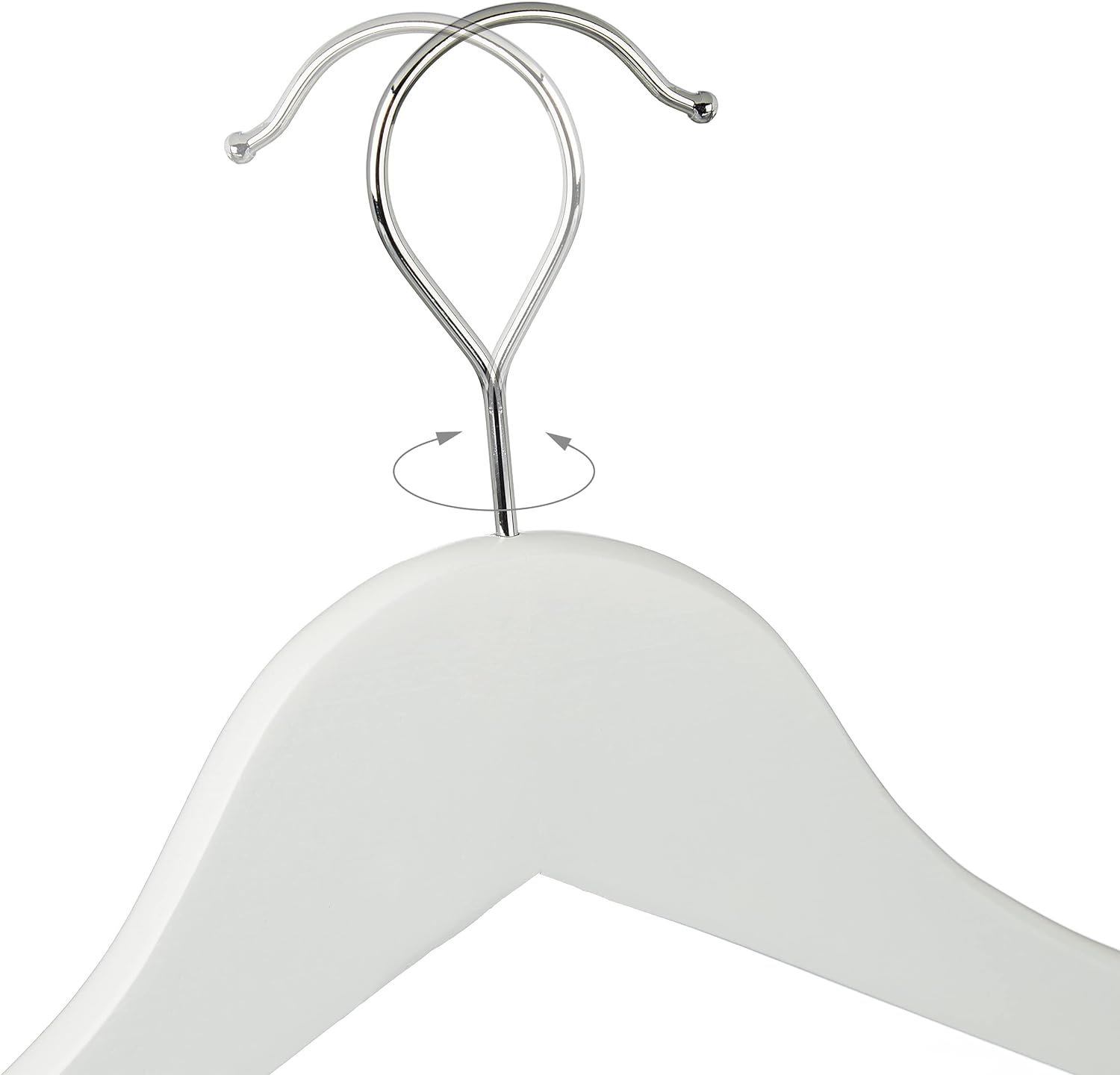 - In Weiss: Glänzend lackierter Holzbügel in Weiss - Garderobenbügel auch in Schwarz oder Braun erhältlich - Haken aus Metall ist 360° drehbar