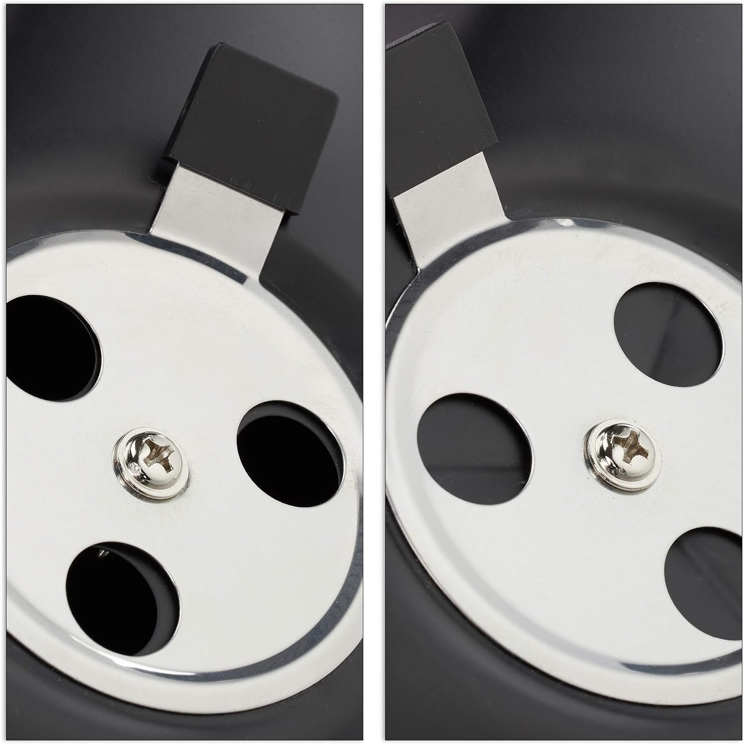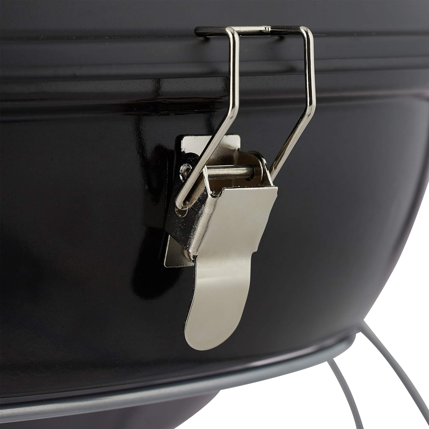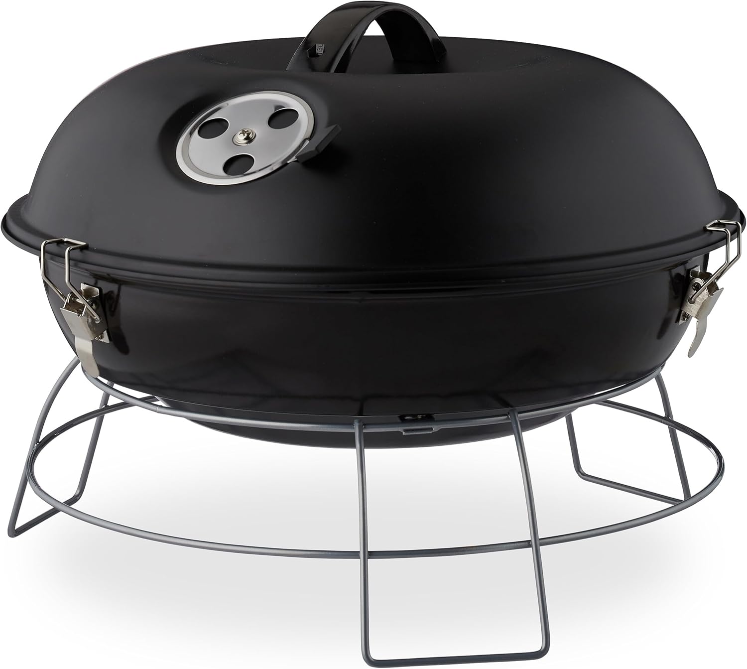 - Form: Holzkohlegrill mit D ca. 36 cm und fixierbarem Deckel in schlichtem Schwarz - Kompakt und tragbar
