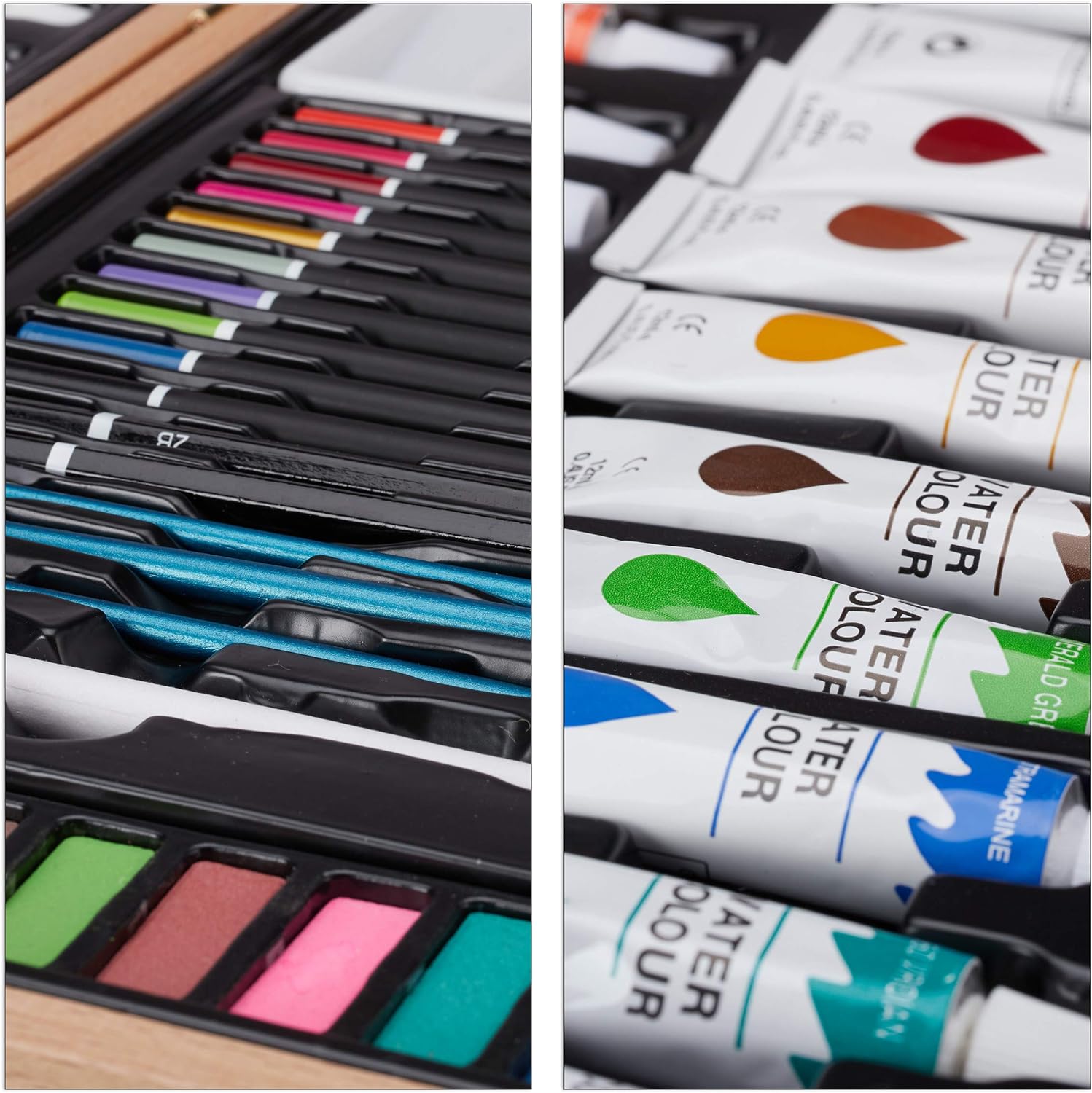 - Set: 56-teiliger Malkoffer aus Holz für Erwachsene – Eignet sich ideal für Anfänger und Hobbyzeichner