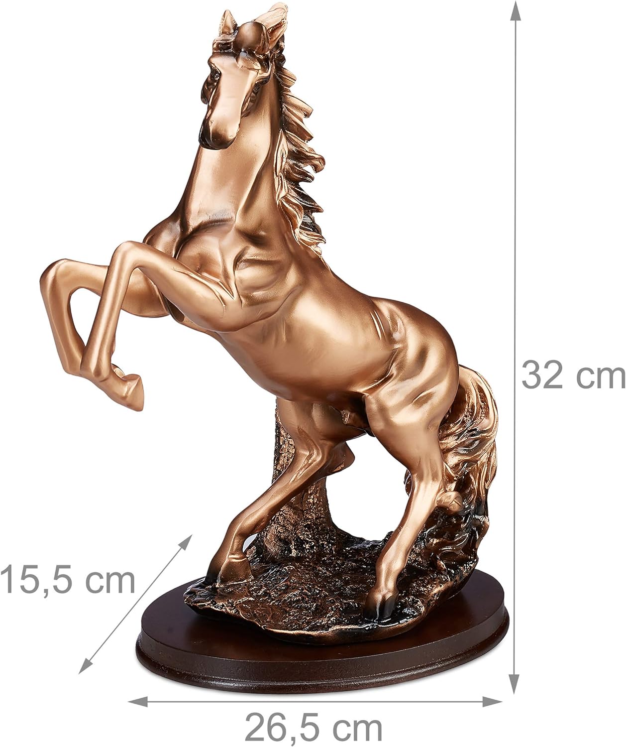 Relaxdays Pferd Deko, stehende Pferdefigur, kraftvoller Hengst, ovaler Sockel, Wohnzimmer, HBT: 32x2