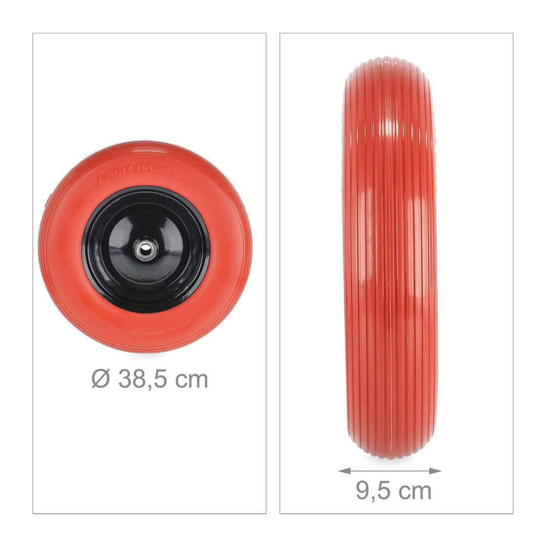 Relaxdays Schubkarrenrad PU 4.80 4.00-8, Vollgummireifen mit Stahlfelge, pannensicher, Schubkarrenre