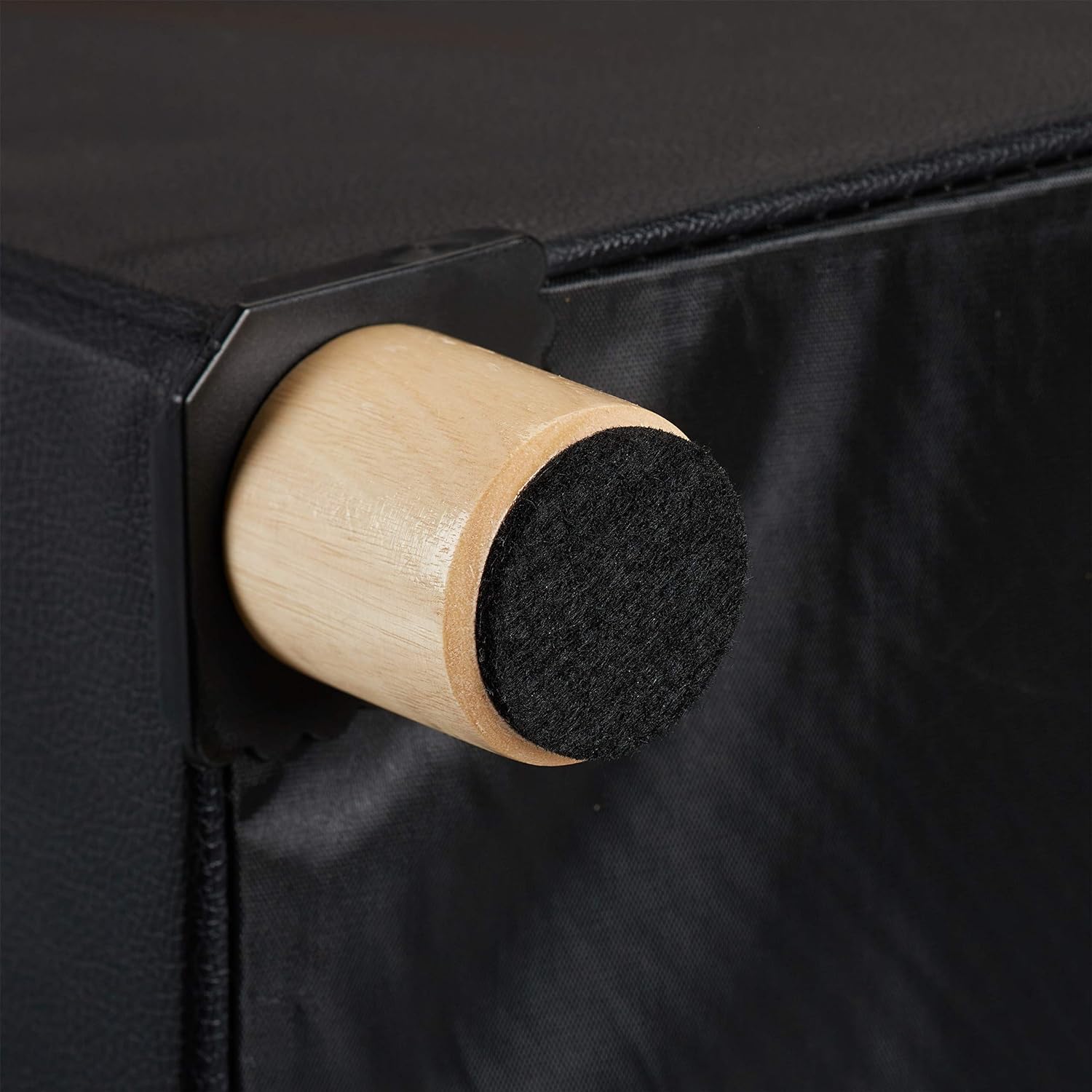 - Dekorativ: Standbeine aus natürlich gemasertem Holz setzen zum Kunstleder-Bezug attraktive Akzente