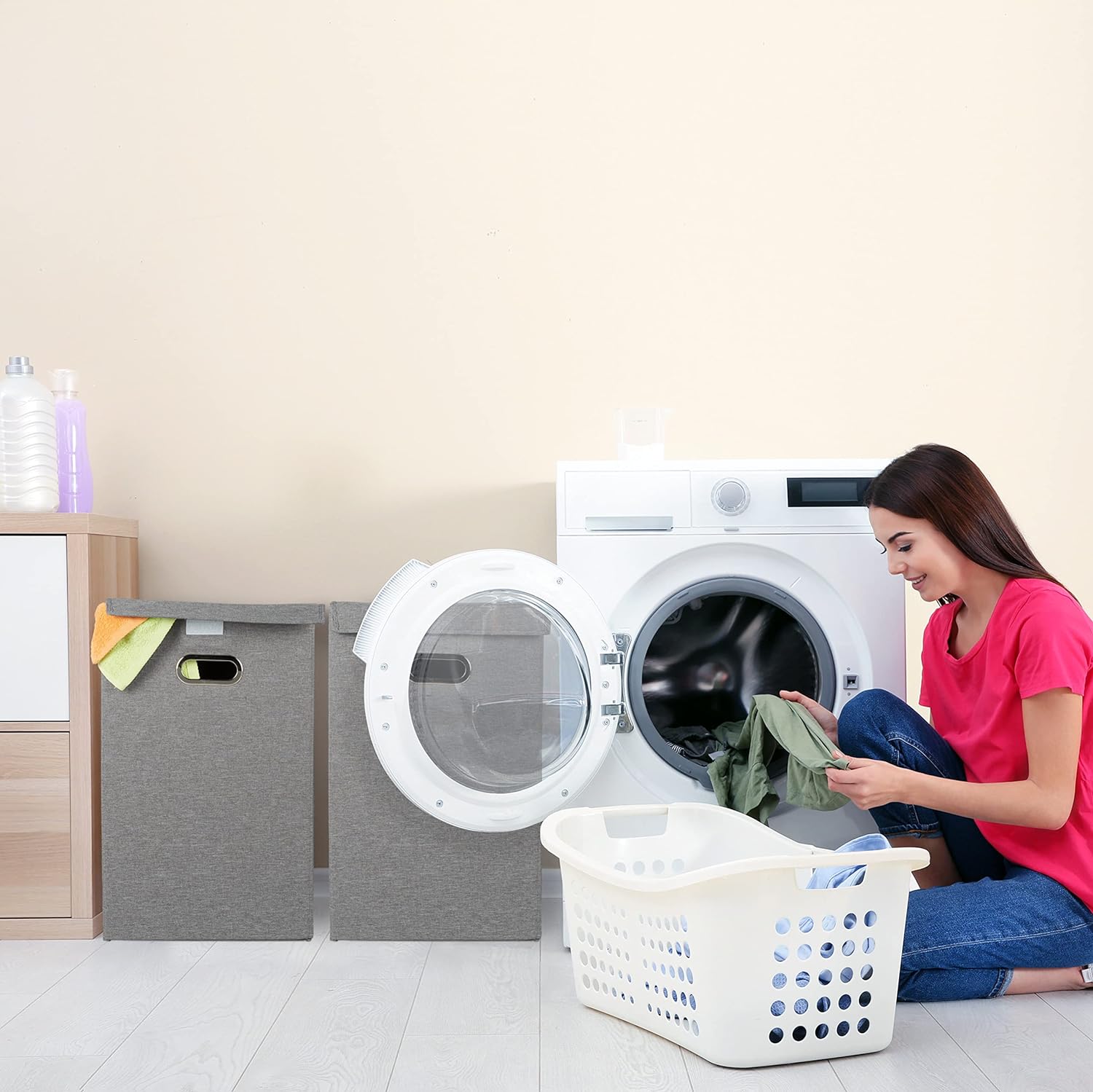 • Im Doppelpack: Schmutzwäsche in den 2 grauen Wäschekörben mit je ca. 62 L Fassungsvermögen sammeln