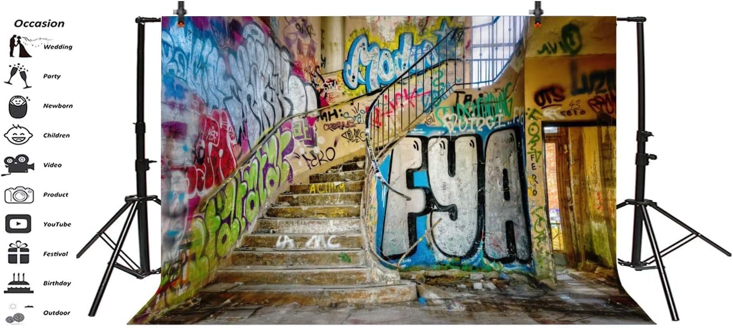 Renaiss 1.8x1.2m Urban Street Graffiti Wand Fotografie Hintergrund Retro Verlassene Schulgebäude Fot