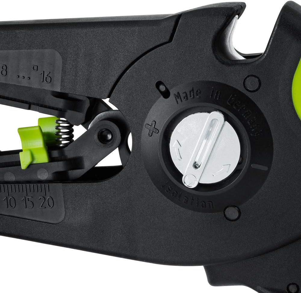 - Selbsteinstellend auf Querschnitte im Bereich 0,08 mm² bis 16 mm² ohne Messerwechsel