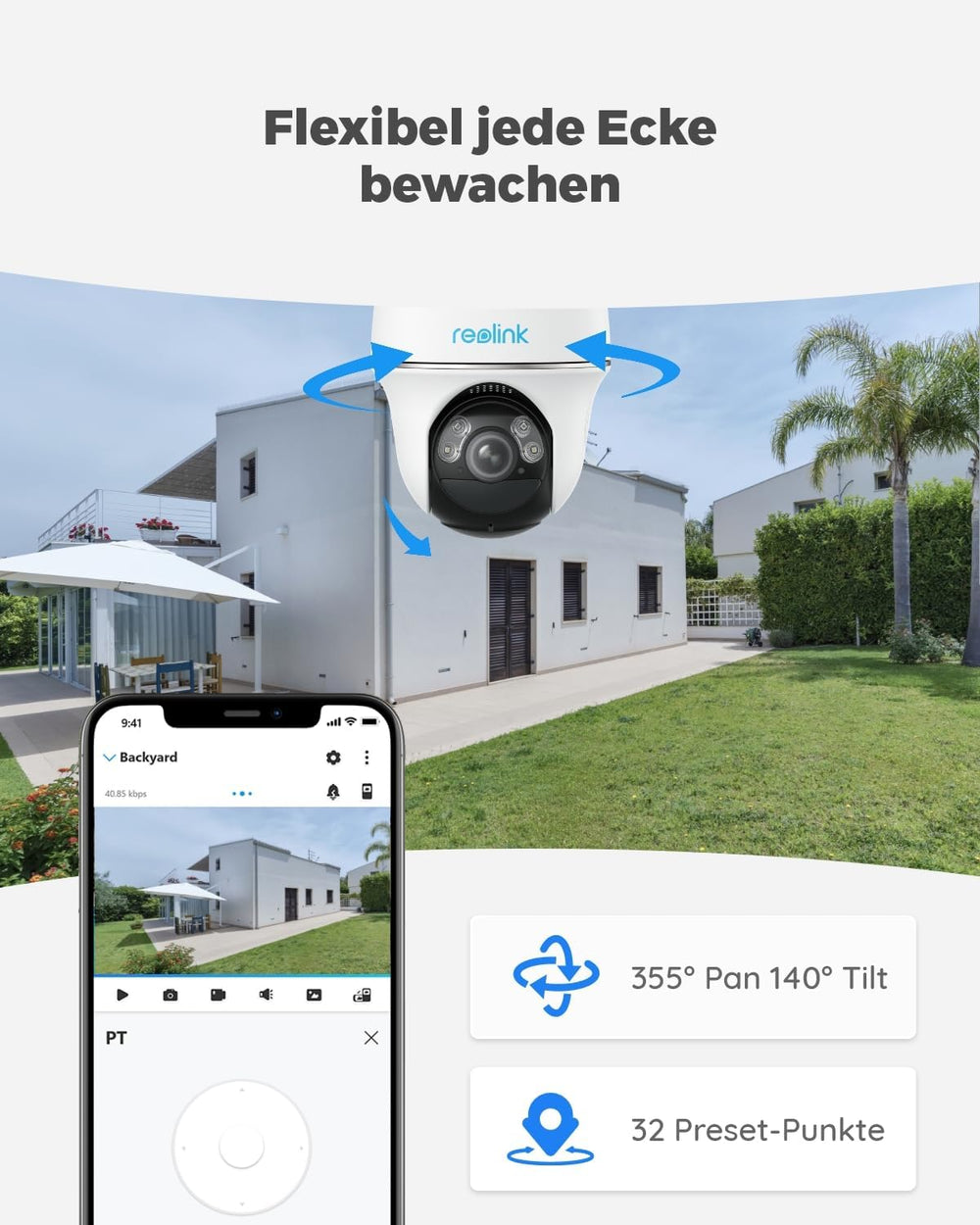 - 100% KABELLOS & SOLARBETRIEBEN: Das kabellose Design sorgt für eine einfache und flexible Installation. Diese PTZ-Solarkamera ist mit einem wiederaufladbaren Akku ausgestattet und kann durch Anschluss an das mitgelieferte Reolink Solarpanel kontinuierlich mit Strom versorgt werden. Umweltfreundlich und kostensparend