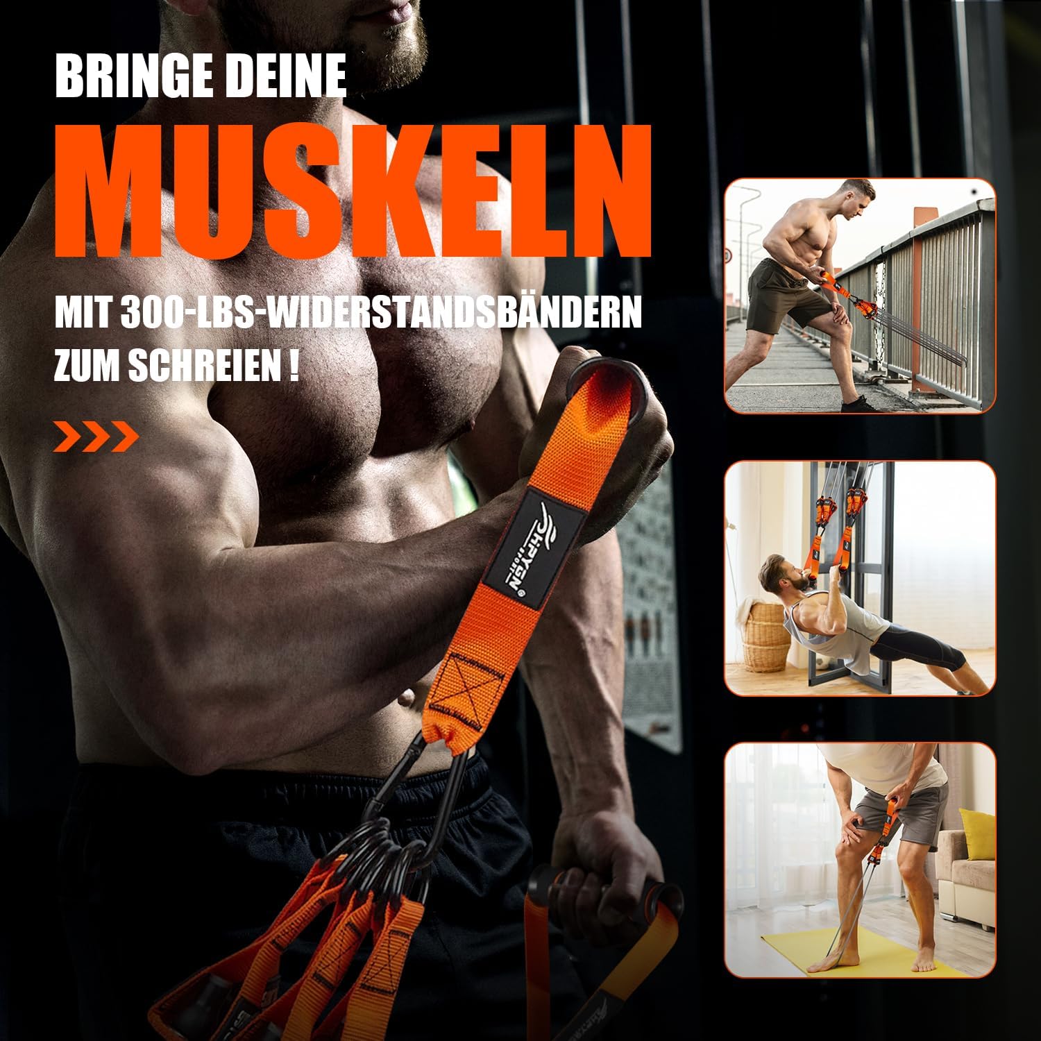 • 【Bequeme und fördernde Mobilität】 Stören Sie die hohen Gebühren für das Fitnessstudio? Haben Sie den dichten Verkehr auf dem Weg zum Fitnessstudio satt? Benötigt werden nur ein Satz Widerstandsbänder und ein Türanker – Sie können jederzeit