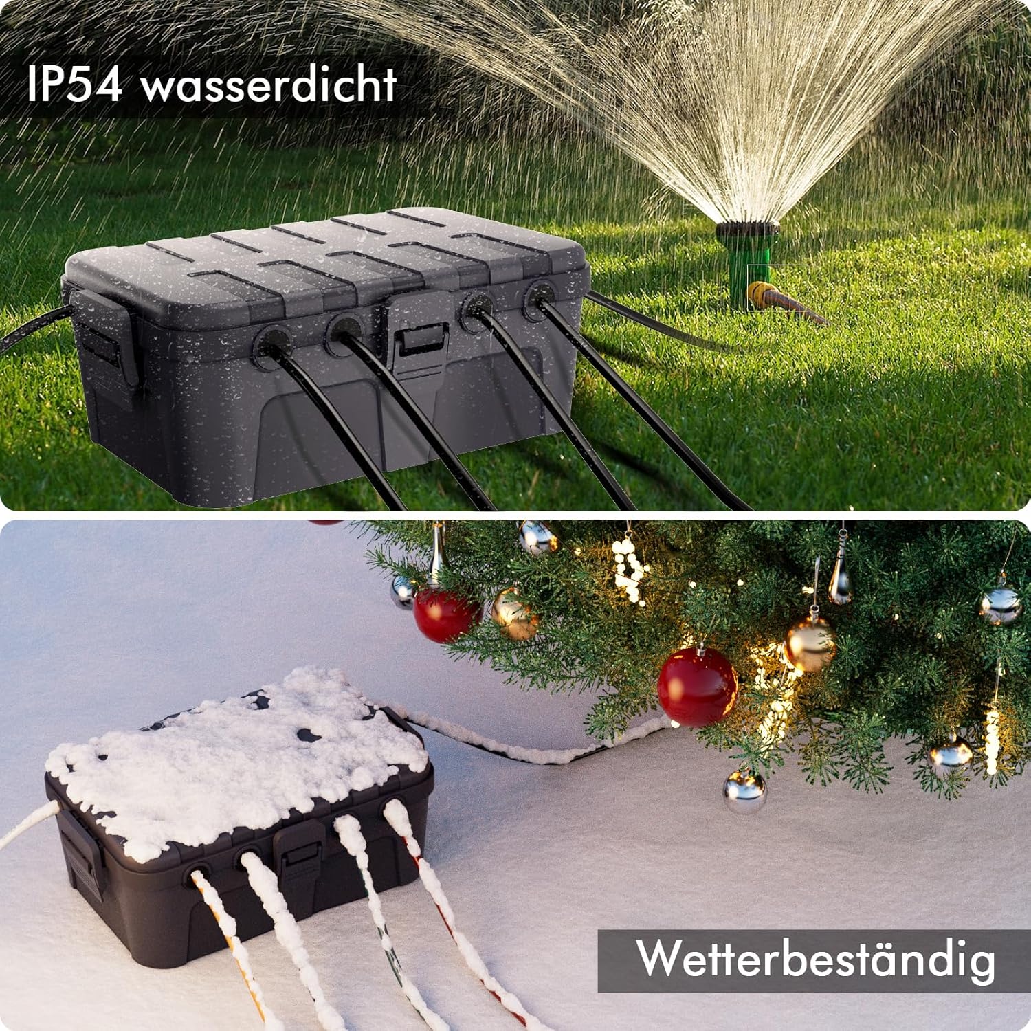 - Entwickelt, um die vorübergehende Kabelverbindung im Freien sicher und geschützt zu halten. Mit grossen Abmessungen (32 x 22 x 13 cm) und 6 Kabeleingängen (vorne * 4 + seitlich * 2) ist es eine One-Stop-Lösung zum Schutz von Steckdosenleisten im