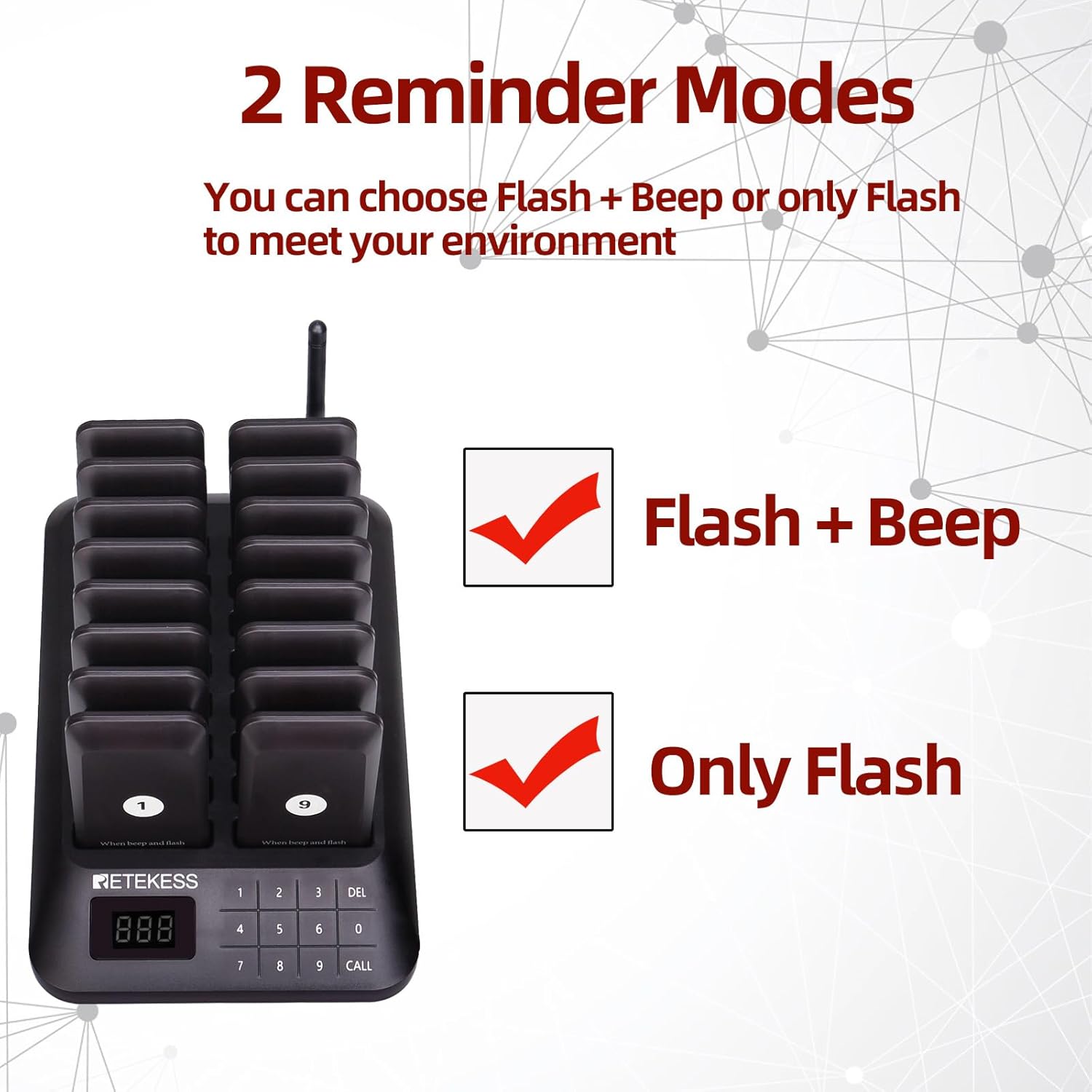 - Grosse Kapazität 32 Pager; ermöglicht es Ihnen, mit Zeitraum von grossen Passagier leicht umgehen; max 998 Pager können als Ihr Geschäft Wachstum hinzugefügt werden