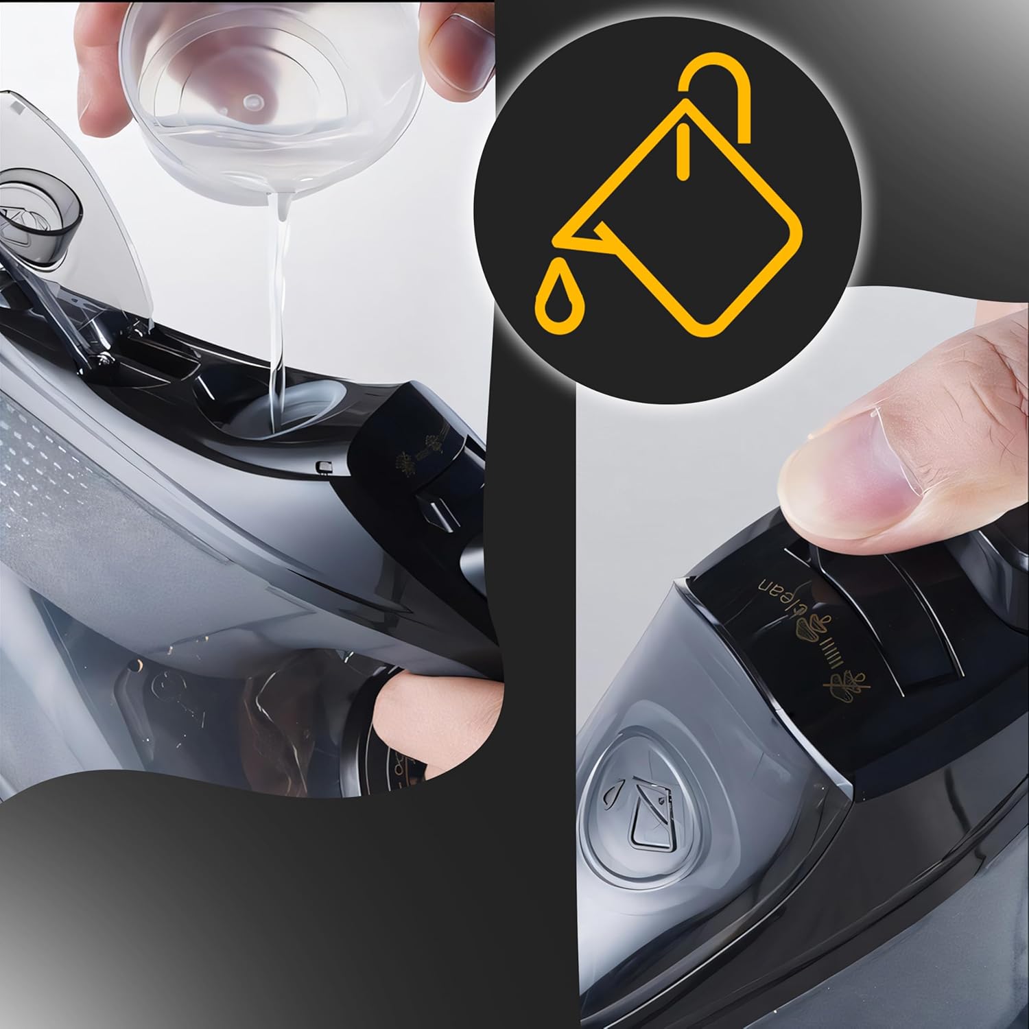 - Self-Cleaning für einfachen Betrieb und längere Lebensdauer: Die Self-Cleaning-Funktion ermöglicht eine automatische Reinigung des Dampfbügeleisens, sodass keine manuelle Wartung notwendig ist. Dies sorgt für eine einfache Wartung und verlängert