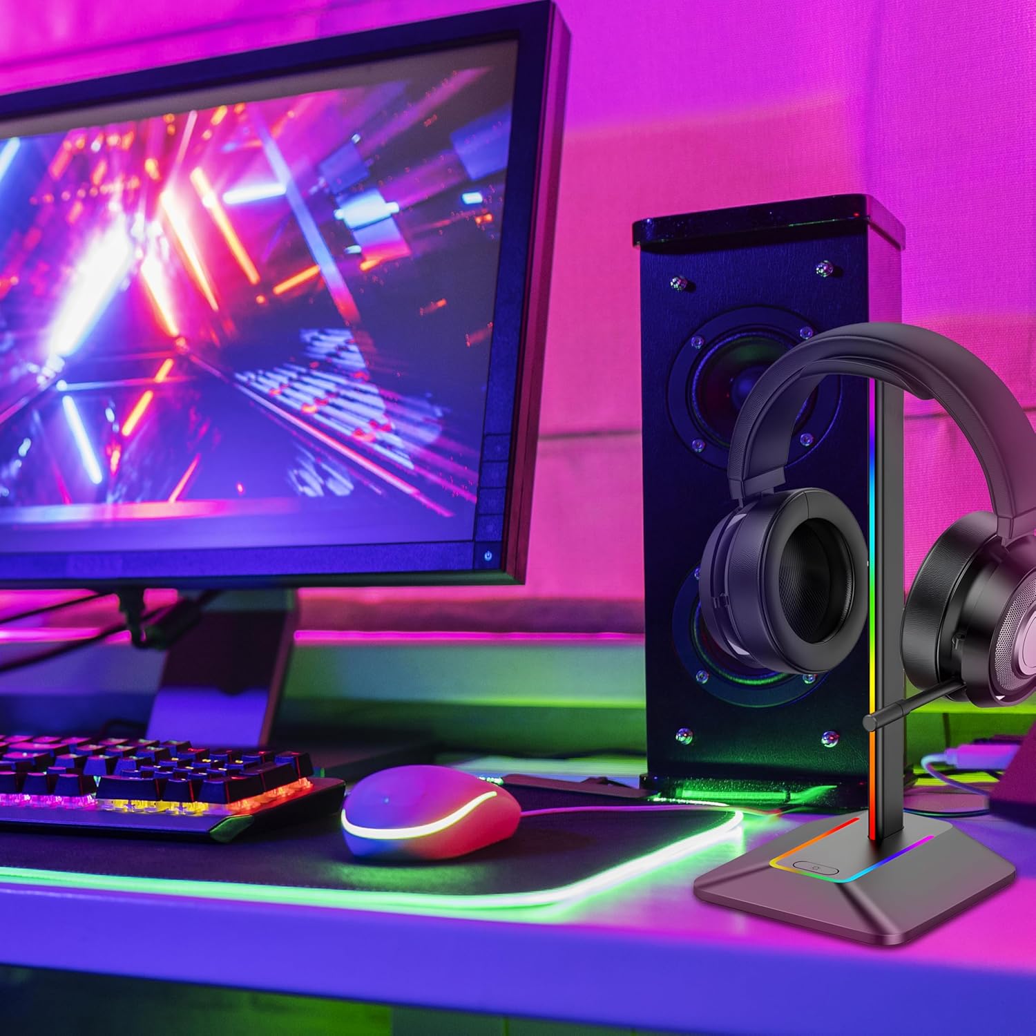 - Multifunktionalität - Der Ständer mit RGB-Hintergrundbeleuchtung und USB-Hub zeichnet sich durch seine Multifunktionalität aus: Er ist leicht und tragbar, so dass er sich einfach bewegen und transportieren lässt. Dank seiner kompakten Grösse passt
