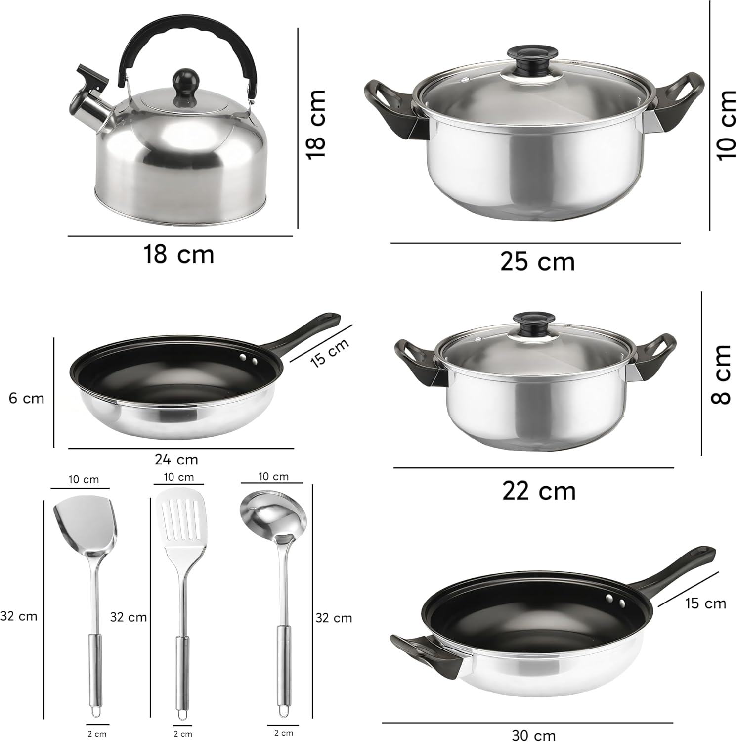 - Perfekte Küchenausstattung in einem Set! - Mit diesem 11-teiligen Kochfeld-Set aus Edelstahl haben Sie alles, was Sie zum Kochen brauchen - vom grossen Suppentöpfen bis zur praktischen Bratpfanne zum Anbraten von Speisen. Hochwertige Verarbeitung und