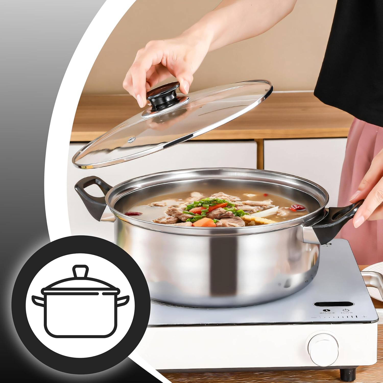 - Schnell, sicher und energieeffizient kochen! - Edelstahlplatten heizen sich im Handumdrehen auf und speichern die Wärme optimal, wodurch Energie gespart wird. Glasdeckel mit Belüftungslöchern verhindern das Überkochen des Wassers und hitzebeständige