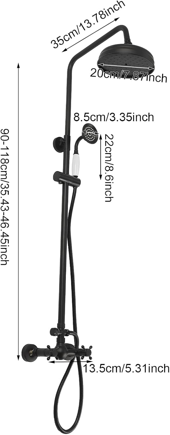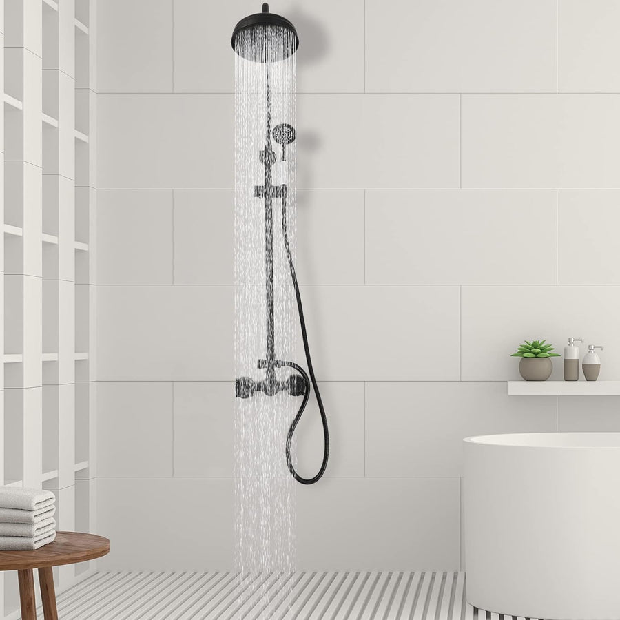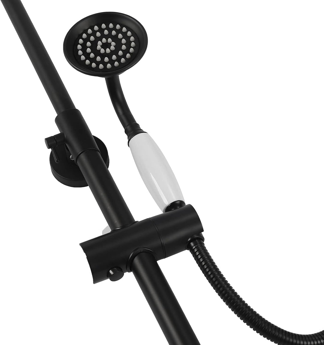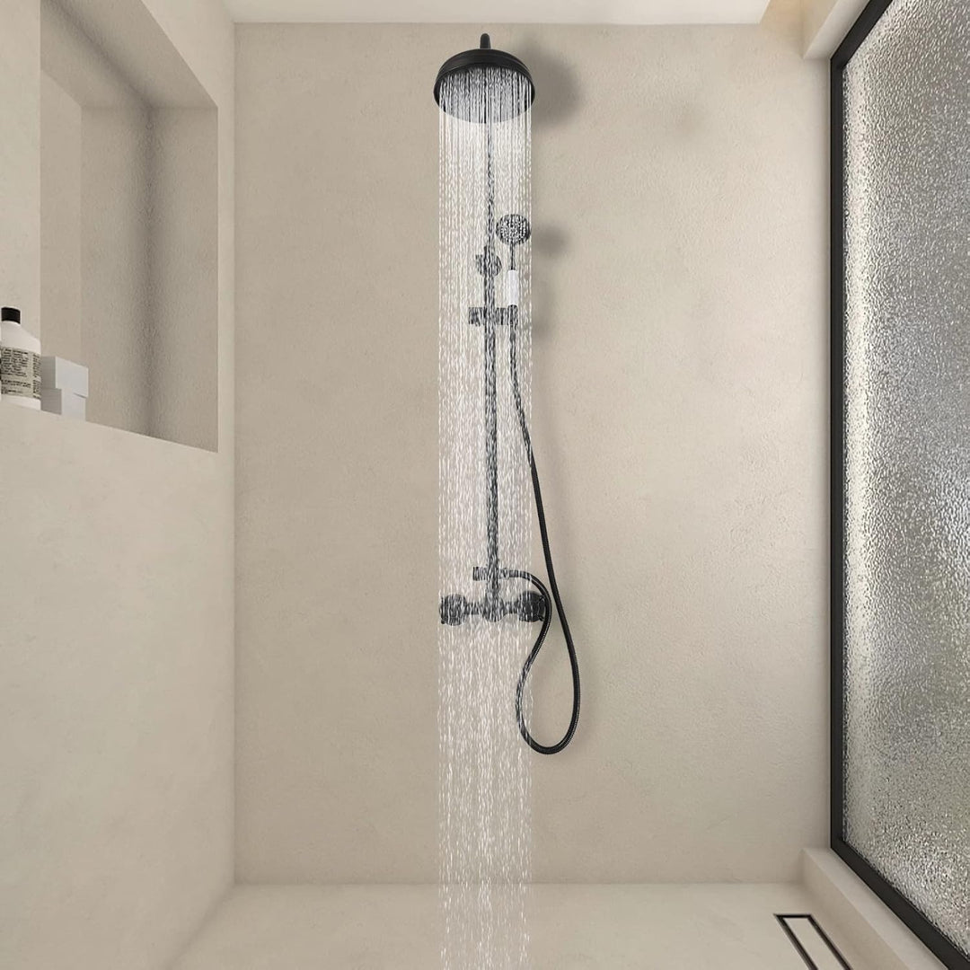 • Die schwarz beschichtete Oberfläche bietet ein elegantes Aussehen, das Korrosionsbeständigkeit und Langlebigkeit gewährleistet; Die Hochdrucktechnologie bietet auch bei niedrigem Wasserdruck konstant starke Regenduschen.