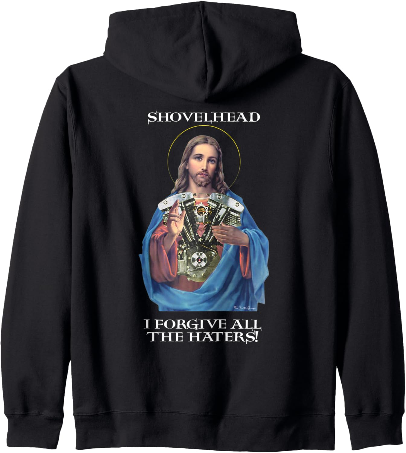 PRODUKTBESCHREIBUNGEN Vintage American Classic Motorcycle V-Twin – Retro Rockabilly Motto Dirty Gringo Jesus Thema Bild schmückt die Rückseite dieses feinen Fadens. Coole Farbkombinationen, damit Sie gut aussehen und sich gut fühlen. VTwin Shovel Legend Cycle Engine – Hot Rod inspiriertes Thema, um die Aufmerksamkeit von besonderen Menschen zu erregen. Ein tolles Vergnügen für jeden, der nach einem coolen, hippen, lustigen und Vintage-Kleidung sucht. Diese Retro-Jesus-Schaufelkopf "I Forgive all the haters Bikers Gear Bekleidung wurde von The Dirty Gringo entworfen.