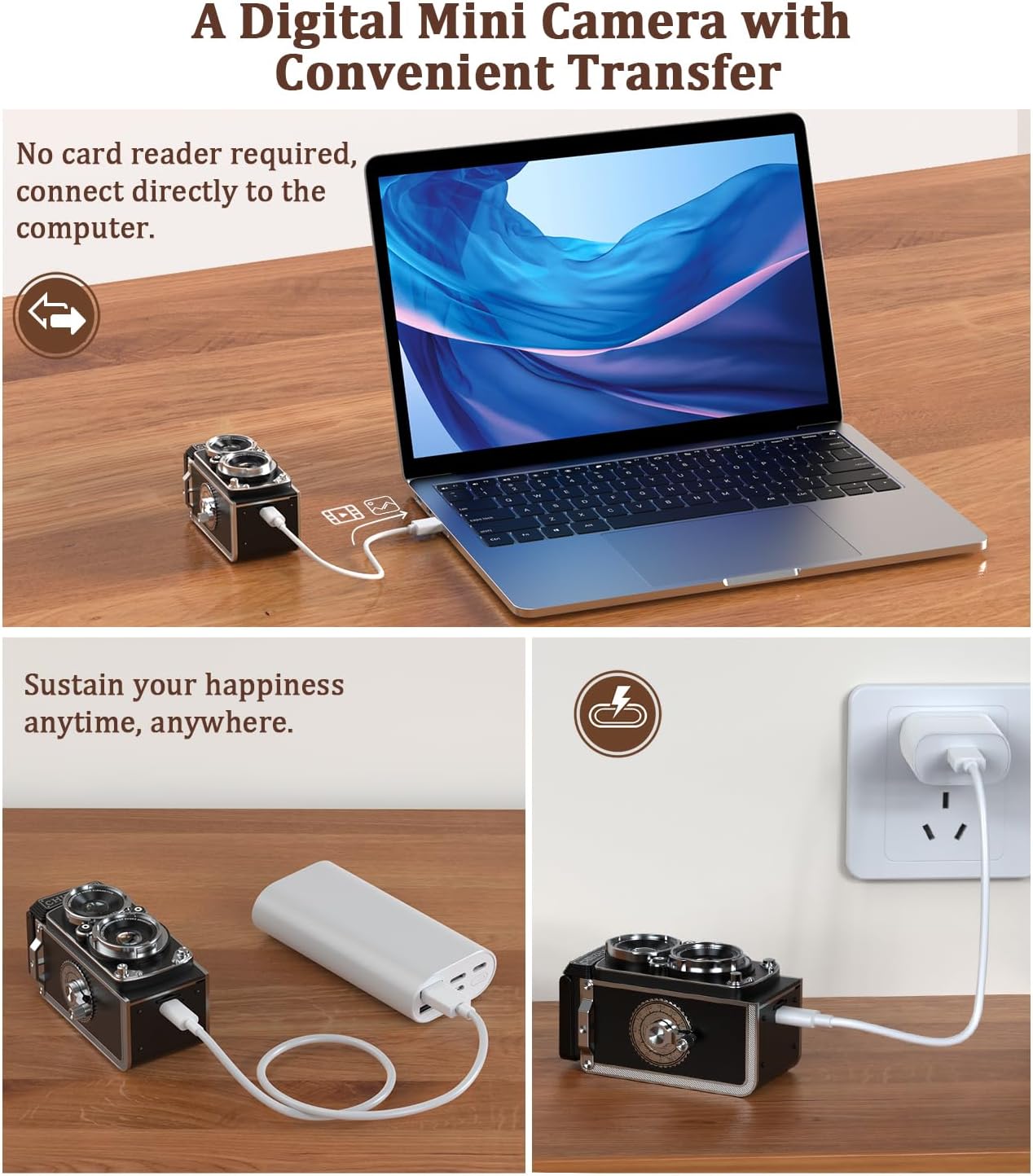 - Kamera im Retro-TLR-Stil: Im schnelllebigen digitalen Zeitalter möchten wir die Schönheit bewahren und den Moment für die Ewigkeit festhalten. Diese kompakte Digitalkamera verfügt über ein klassisches Retro-Design und jedes Detail strahlt eine