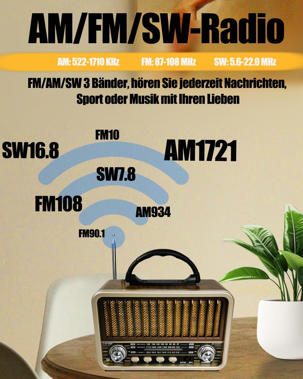 - 【3 Band Radio mit ausgezeichnetem Empfang】 Der Frequenzbereich (AM: 522-1710 KHz, FM: 87-108 MHz, SW: 5.6-22.0 MHz). Mehrere Bänder bedeutet, dass das tragbare radio klein Sender aus mehr Bereichen empfangen kann, so dass Sie mehr Freude daran