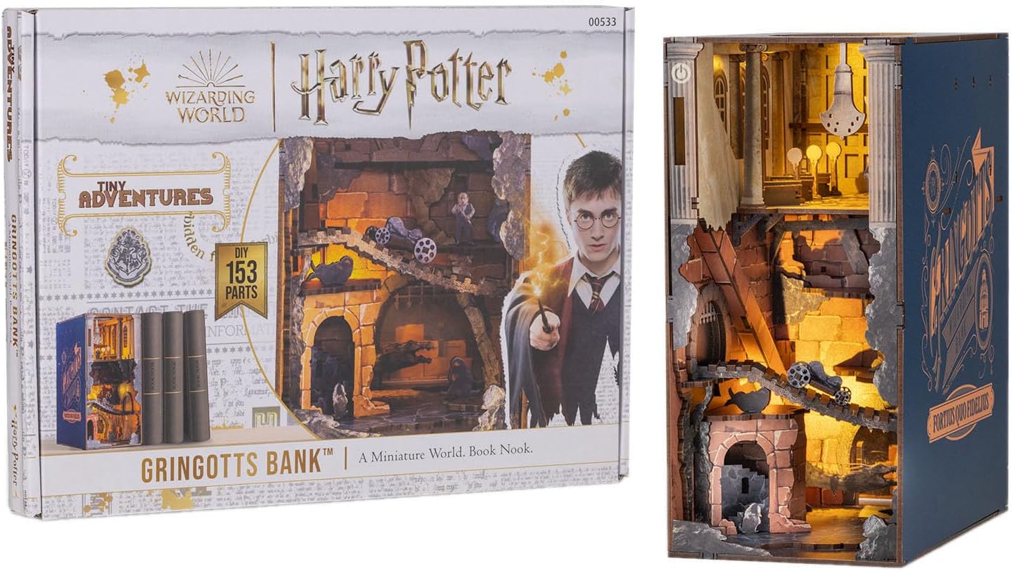 - MAGISCHE MINIATURWELT DER GRINGOTTS BANK IM BOOK NOOK DESIGN Die Tiny Adventures Gringotts Bank bringt die ikonische Zaubererbank aus Harry Potter als hochdetaillierte Miniaturwelt direkt in Ihr Bücherregal; Gute als Book Nook, die Ihre