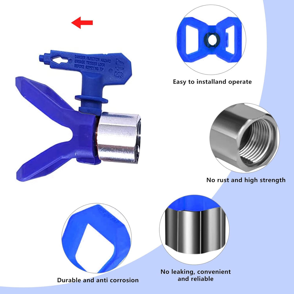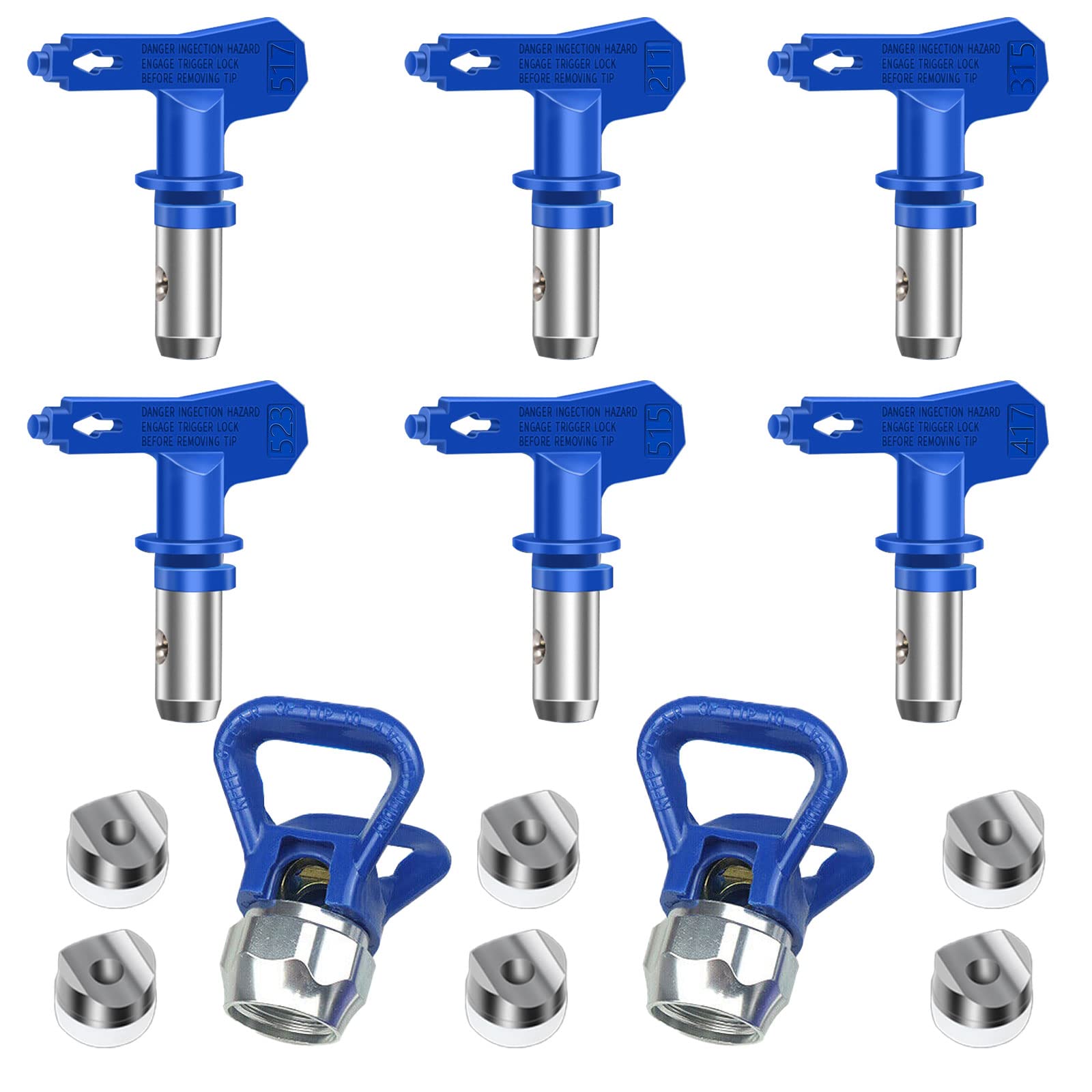 - Was Sie bekommen: Sie erhalten 6 umkehrbare Airless-Sprühspitzen und 2 universelle Airless-Sprühdüsenschutz. 5 Grössen können Ihren täglichen Gebrauch und Ersatzanforderungen vollständig erfüllen (211, 315, 417, 515, 517, 523).